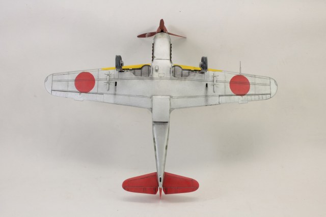 Можно реплику? "Обдиринг" подобного вида хорошо и уместно смотрится на крыльях, капотах и местах где топчутся пилот и техники. К концу войны японы красили свои аеропланы без грунтовки по верх дюраля, красками сомнительного качества. А вот винты - они наоборот покрыты грунтовкой краснокоричневой. Грунтовка держится очень крепко, она не облазит лоскутами и не обсыпается, она как бы истерается на острых гранях. Так что мне обдиринг винта наоборот - не понравился. Но это неважно, это ИМХО. :-)))