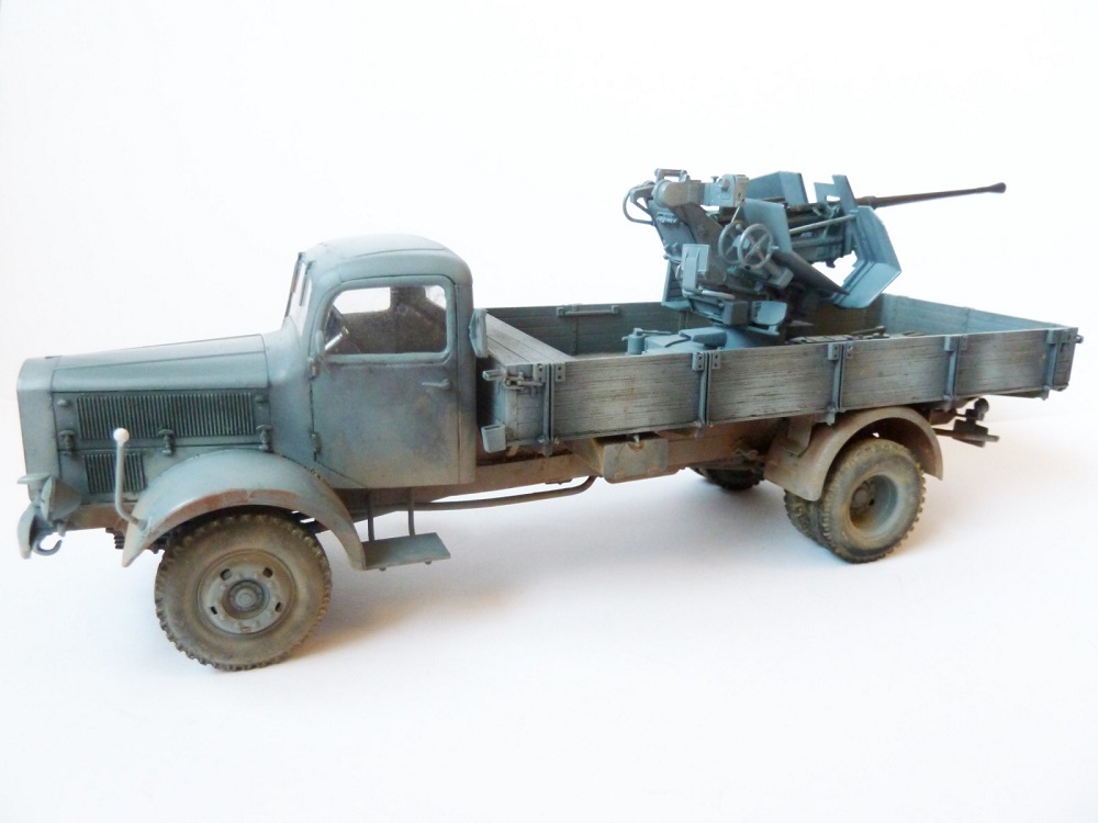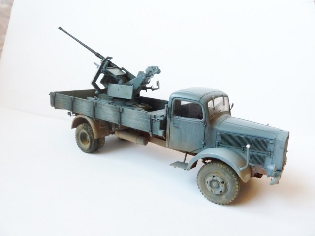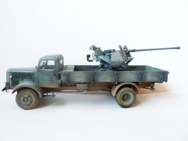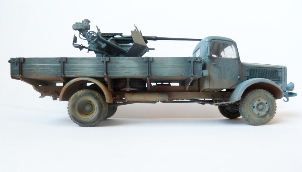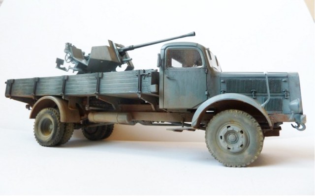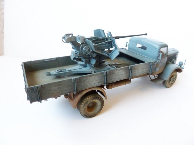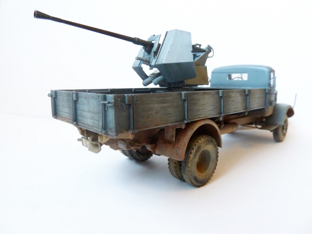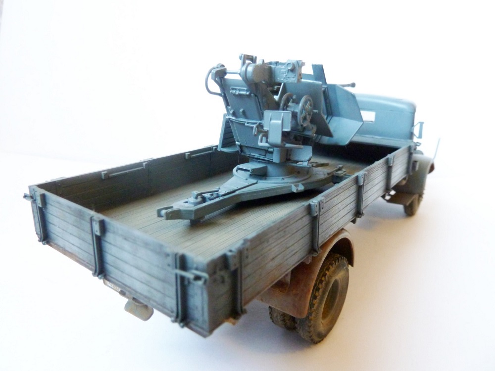 Просто так этот Flak на стандартном лафете не установишь!...он просто не вмещается в кузов этого ,казалось бы вместительного мерседеса.Лафет подвергался доработке и устнавливался на деревянный настил с ручками для демонтажа.Или подвергался другой полевой доработке (изменения конструкции лафета по ширине).Про рамные опоры которые просто необходимы при стрельбе на такой машине уже сказали выше.