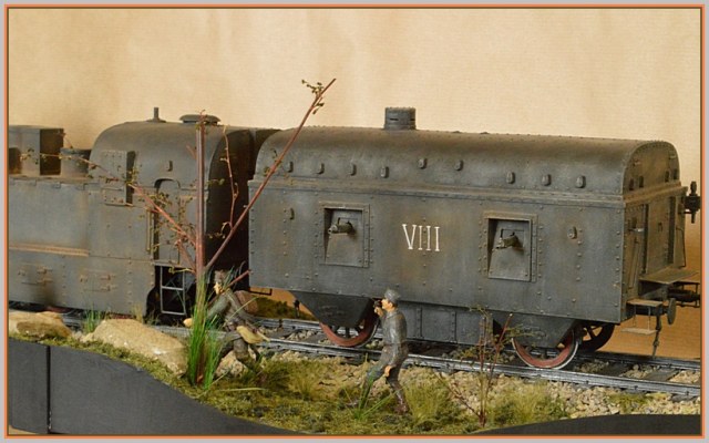 Моя модель - Panzerzug VIII, состоящий из бронепаровоза, штурмового вагона и двух орудийных вагонов (в моем варианте одного орудийного вагона нет - по легенде он в ремонте).
