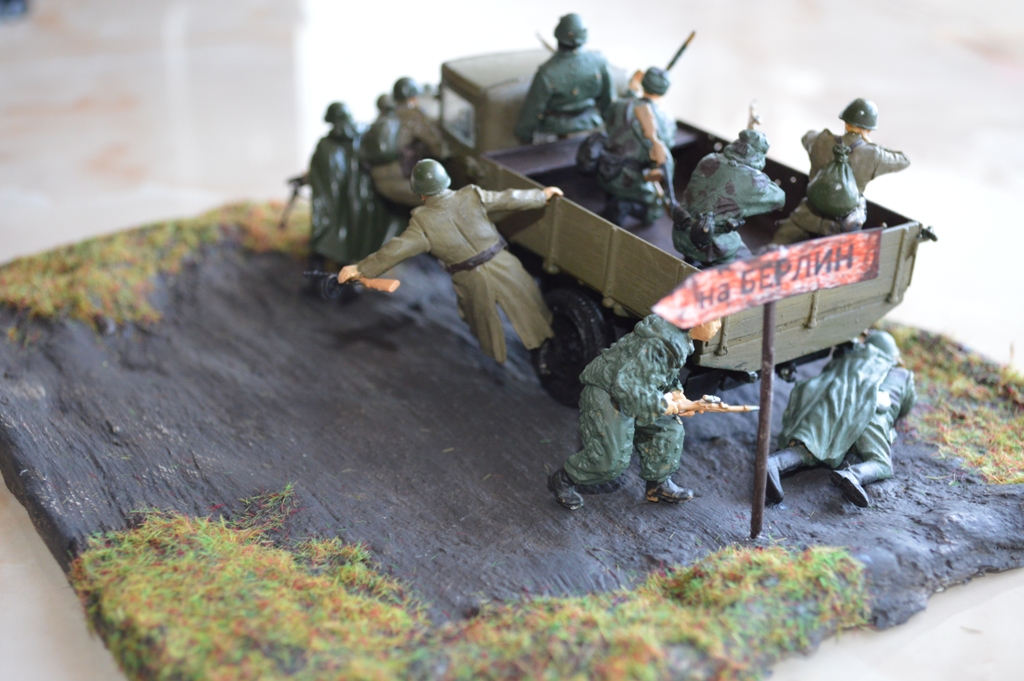 ...Что-то мне эта диорама напомнила "работу" ДЖ.Если заменить машину на ИС-2 и добавить орудие Зис-3,будет "На Берлин!".