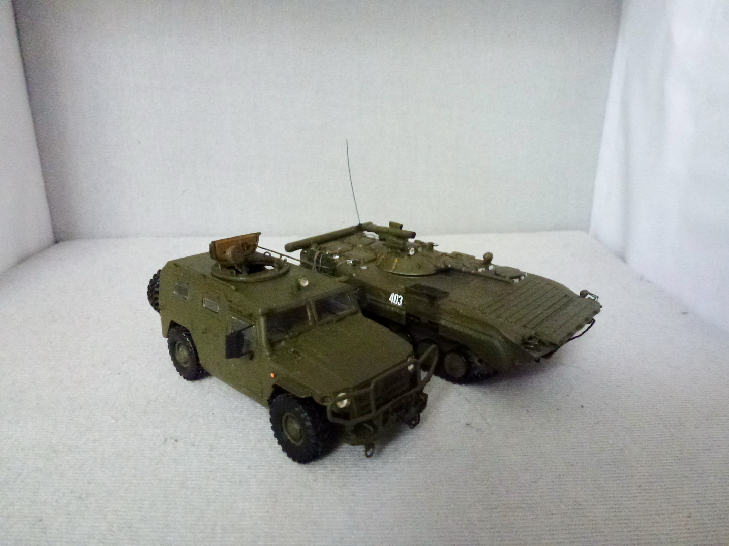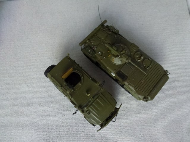 Итого - недостатков много....но я рад что собрал....УАЗик большой по размеру - для сравнения рядом с БМП-1П....