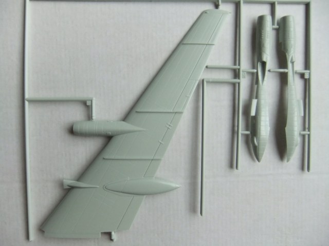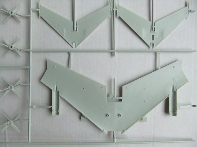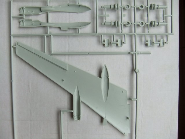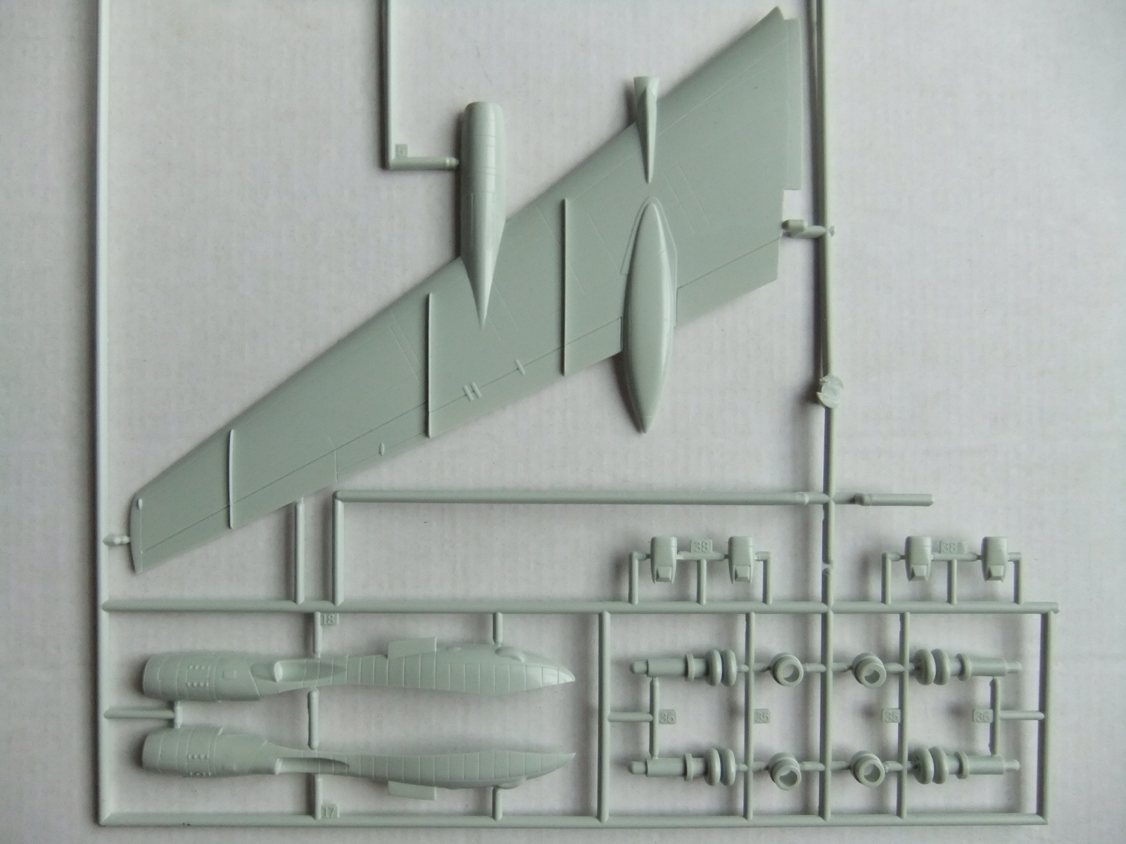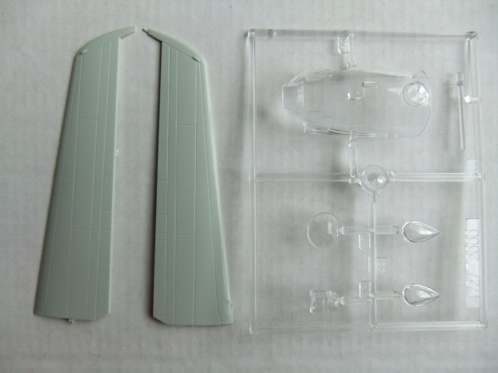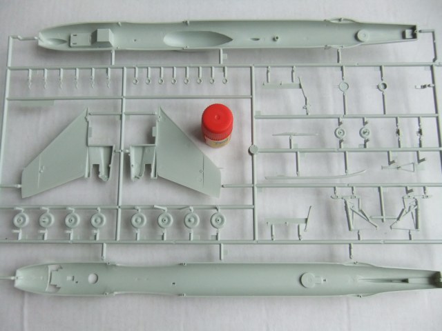 Сам набор хорошего качества, того-же Revell-monogram, на внутренней стороне правого крыла обнаружил надпись made in korea. В коробке 3 литника, без облоя светло серого цвета с качественной расшивкой, плюс литник со стеклами, всего 44 детали. Низ коробки из толстого, крышка из тонкого картона. В коробке прилагается 5-ти мл флакончик с клеем, что не мало важно при наклейки стекол во избежании паров.