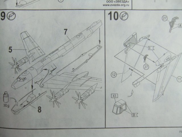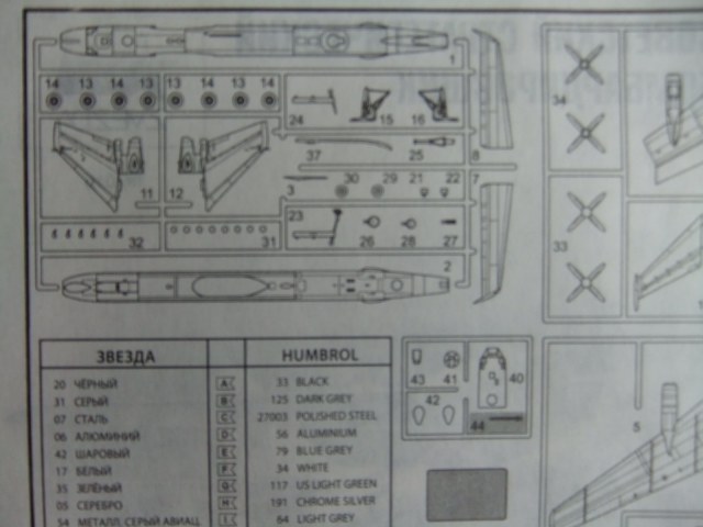 И минус по инструкции. Вся окраска и палитра указана как в "Ревелл". А в палитру от "Звезда" не подходит. Так что, совет найдите старую, любую инструкцию от "Ревелл" желательно от бомбера или реактива. Я сравнивал, палитру по инструкции от "Фантом -2" 1:72.