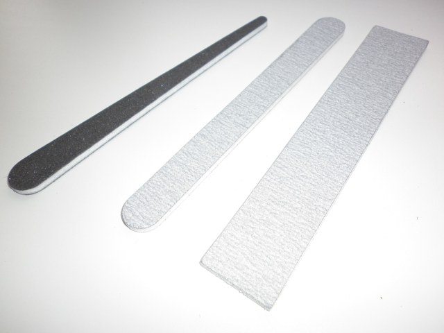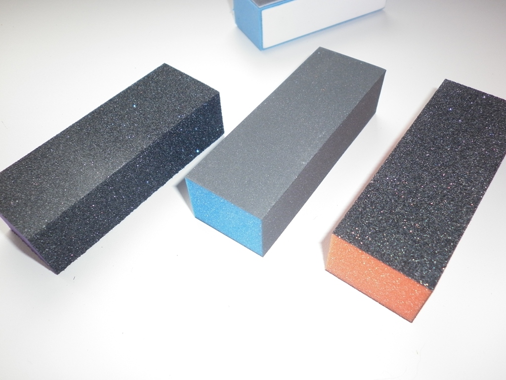 Я пользуюсь приблизительно такими же девайсами купленными в косметическом магазине причем переклеиваю шкурку "3М"(водостойкую на бумажной основе) на резиновый клей. вместо брусков использую ластики также с приклеенной шкуркой. Кстати как эти "фирмовые" штучки насчет водостойкости?