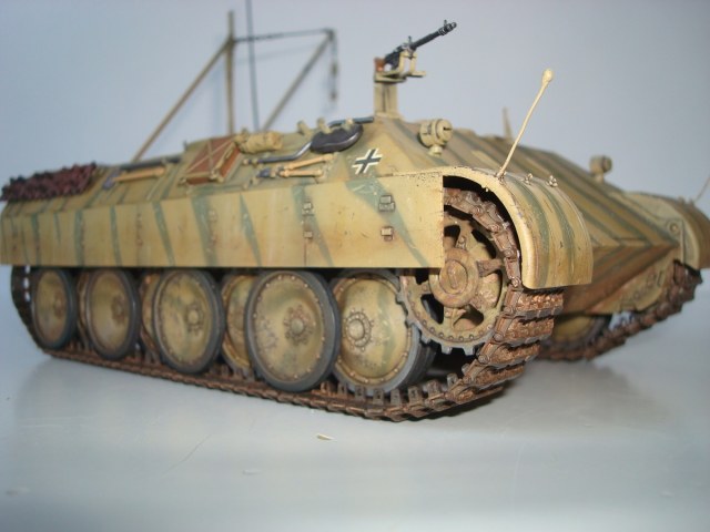 Но с другой стороны - это просто дело вкуса я думаю... Не понравился цвет ржавчины на зап. траках и тонировка глушителя. Про основные траки Вам сказали, я бы также добавил немного блеска стали: всё-же машина живой смотрится. Хотя, как старые - они удались.