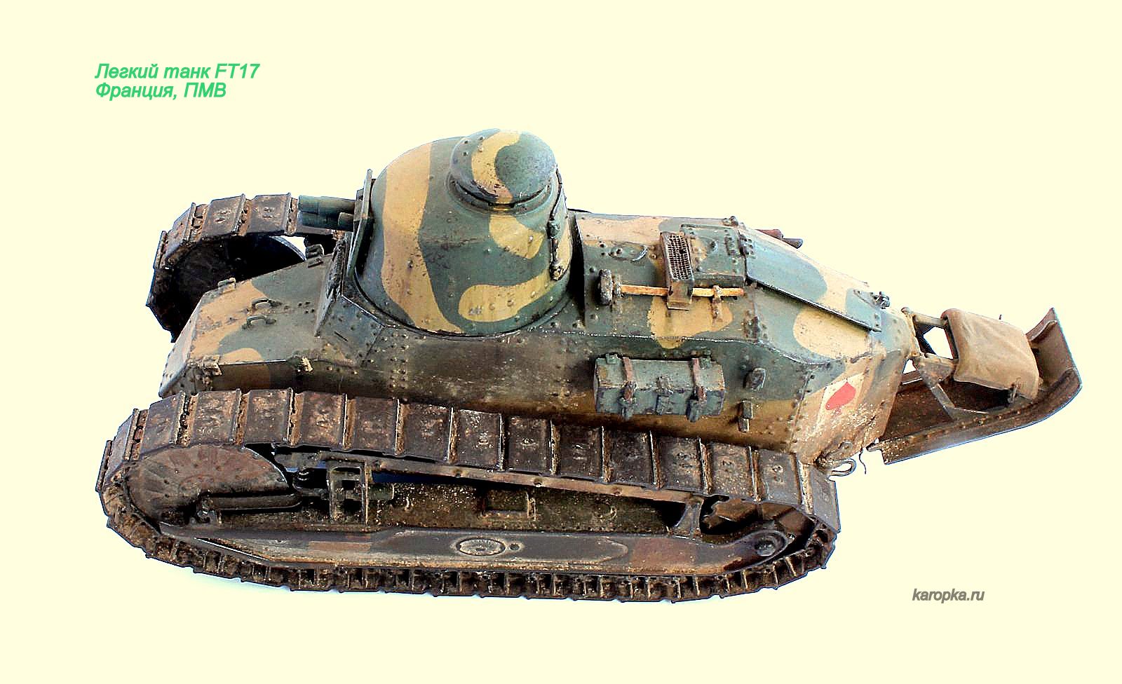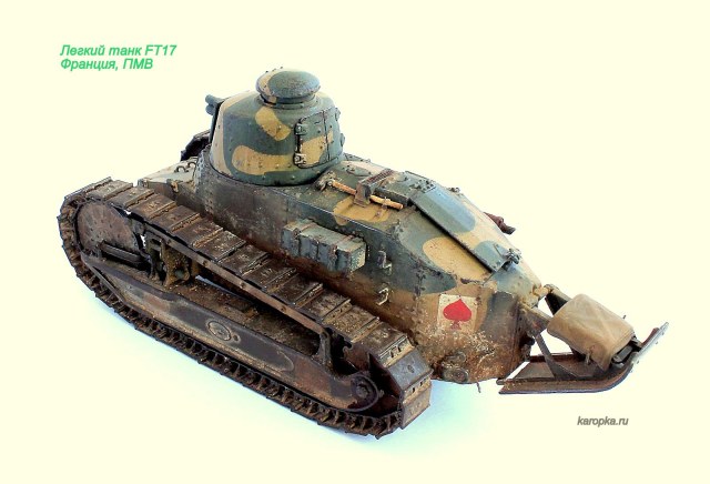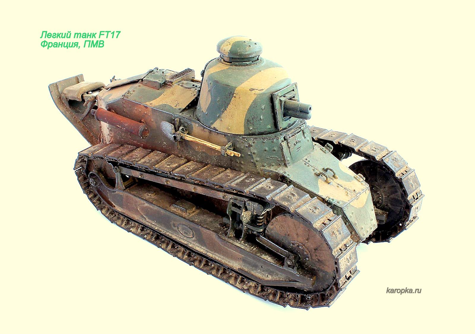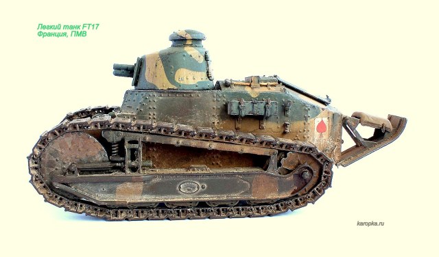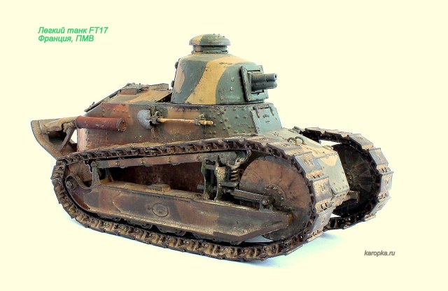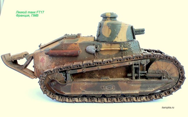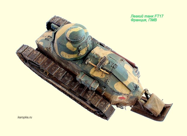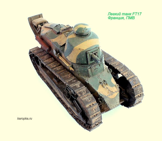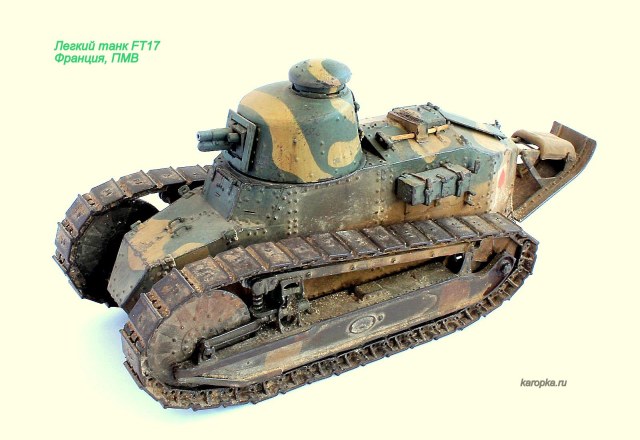 Выставляю модель "прадедушки" всех танков классической компоновки - французский легкий танк "Рено" FT-17 времен Первой Мировой войны.