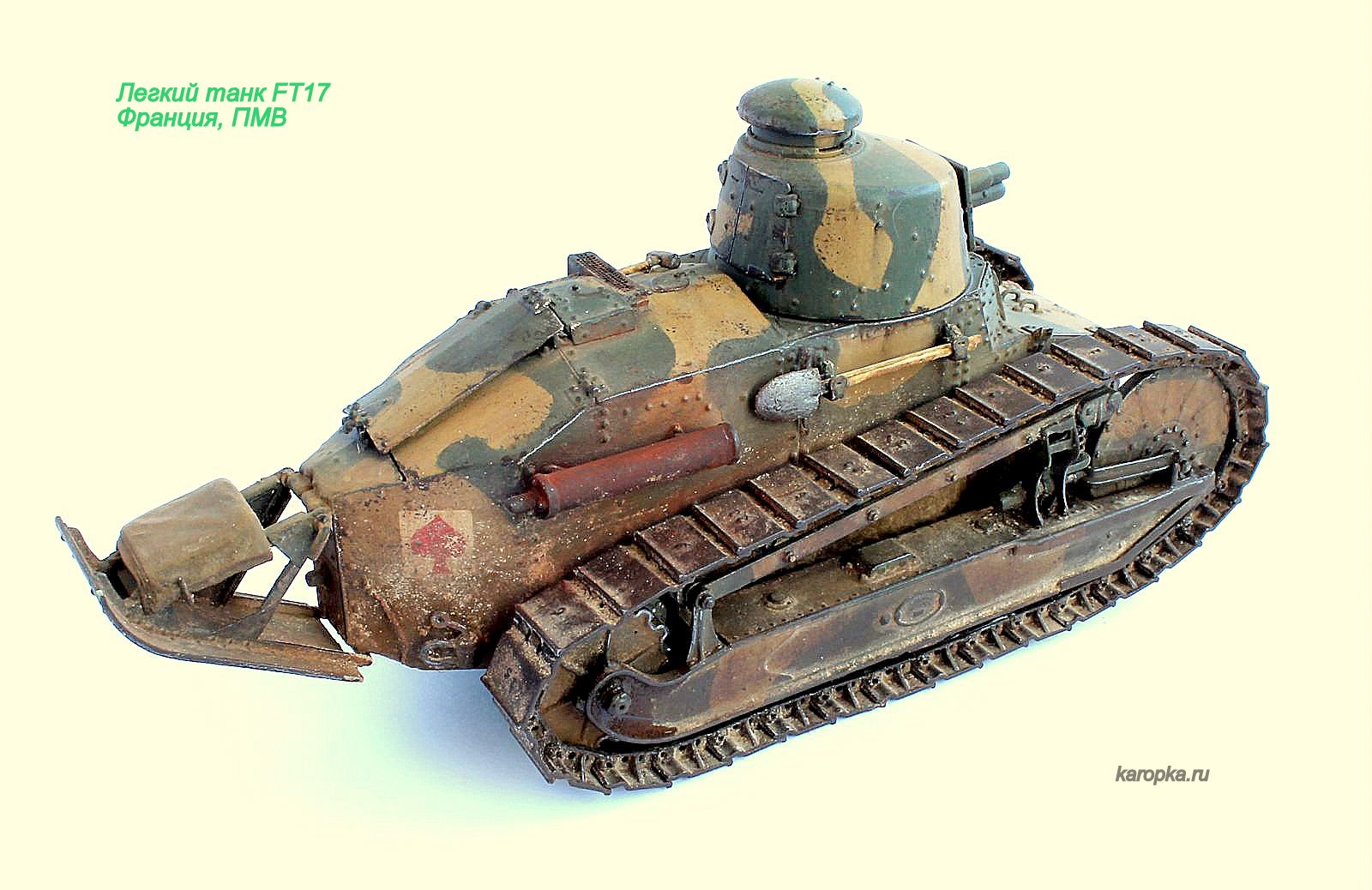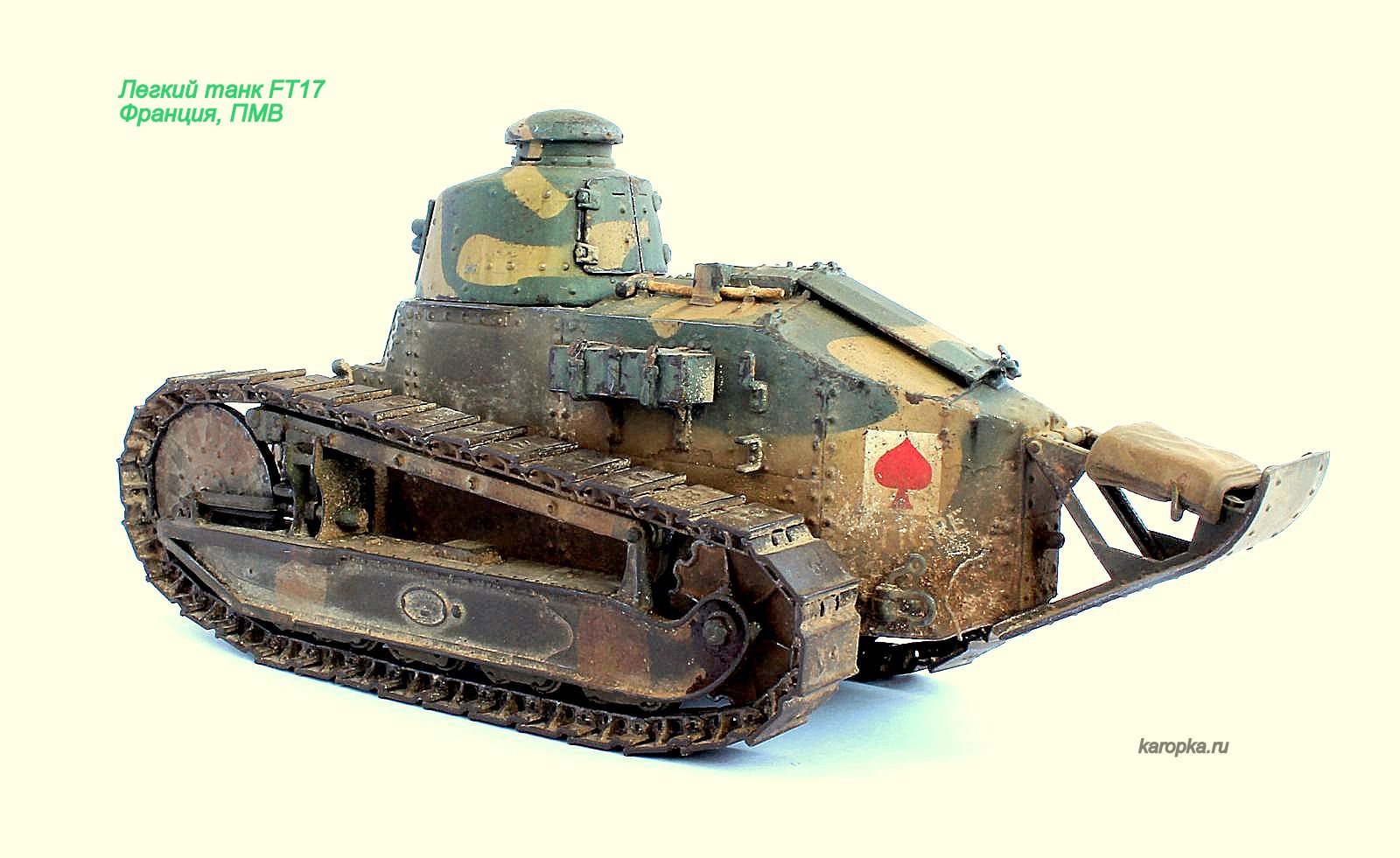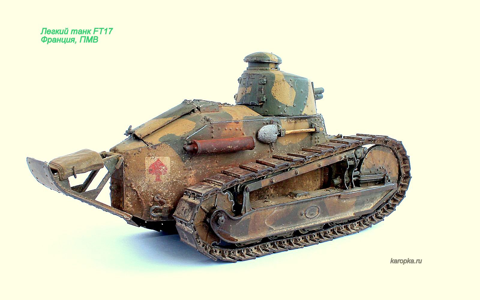 Выставляю модель "прадедушки" всех танков классической компоновки - французский легкий танк "Рено" FT-17 времен Первой Мировой войны.