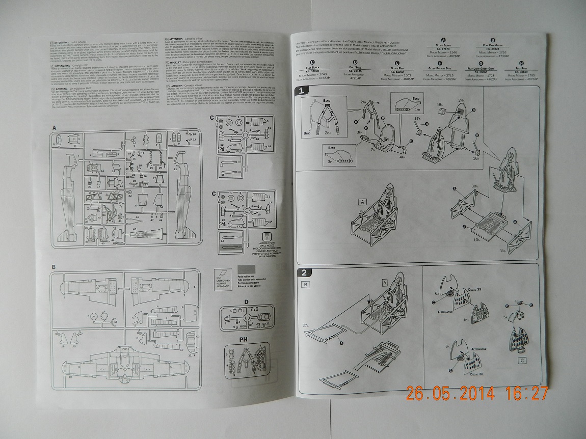 -инструкция в виде книжицы формата А4 хорошо читаемая в 16шагов сборки,имеется здесь же 6 вариантов окраски и размещения декалей на модели;