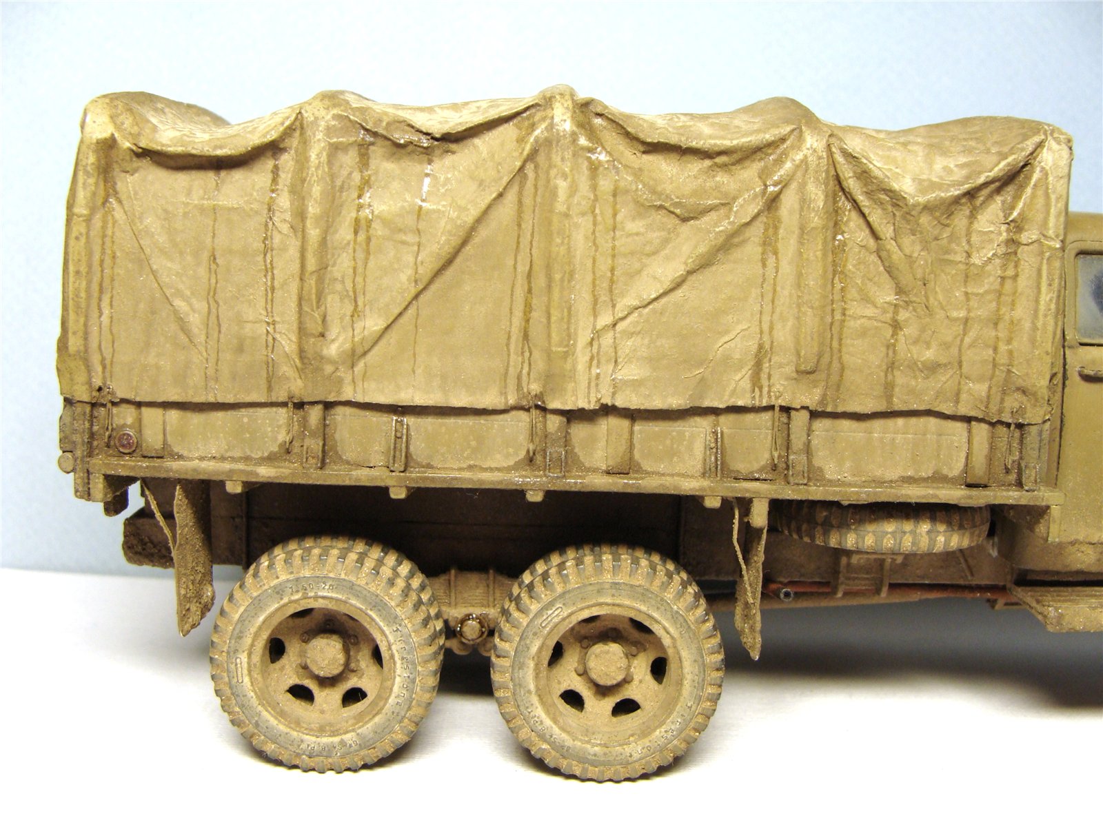 На крыше тента и подкапотном пространстве грязи нет, только пыль. По поводу грязи, у меня было желание изобразить её в засохшем виде, но всё же её оттенок я не много затемнил, чтобы она в некоторых местах выглядела чуть сыроватой, такой эффект можно наблюдать на бампере, да и на всех местах где её много.