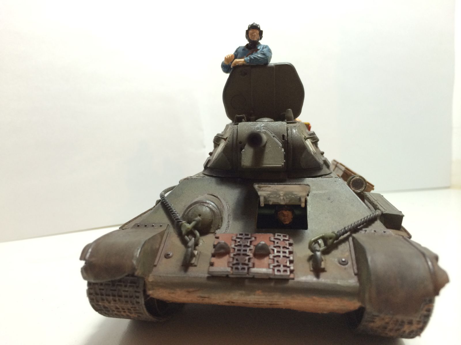 На ВЛД траки появились в 44-ом, до которого подобные машины в общем-то не дожили. Траки к броне не приклеевали, а сажали на бонки и притягивали болтами; мало того, траки без гребня вовсе не стояли "вафлей" вверх, а как раз наоборот.Сочетание такой башни (сталинградка) и бронировки курсового пулумёта теоретически возможно на машинах, прошедших восстановительный ремонт, но не правдоподобно. Сталинградская башня стоит на корпусе выпуска УВЗ? Тоже могло бы быть - как у жертвы ремонта. А вот такой фантастической длины бронировки выпускных труб точно никогда не было. На башнях сталинградок не было поручней - они были на Сормовчанках, но там башня другой формы, не говоря уж о совсем ином корпусе. Перископ и очень много чего ещё ни на что не похожи. Установка сетки ТО такая, что уж лучше бы не заменяли.
