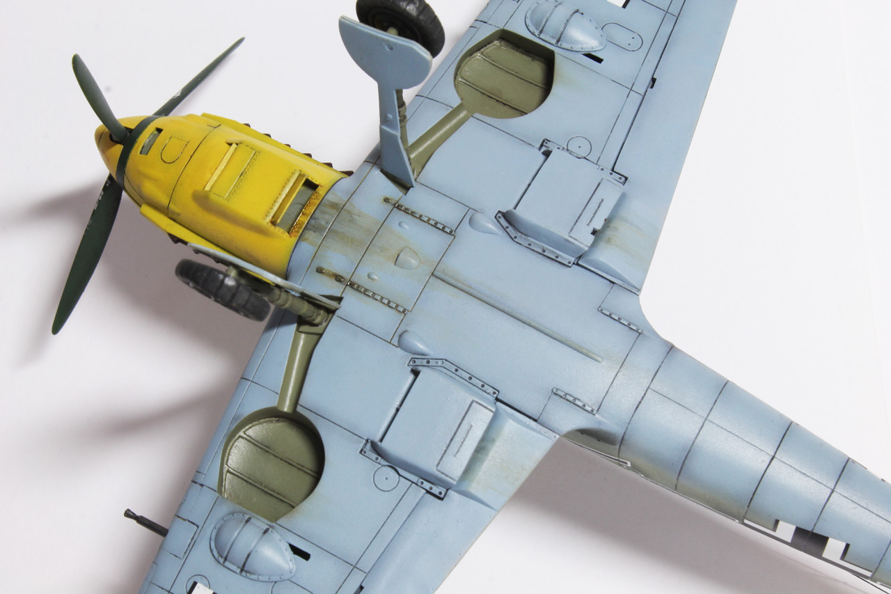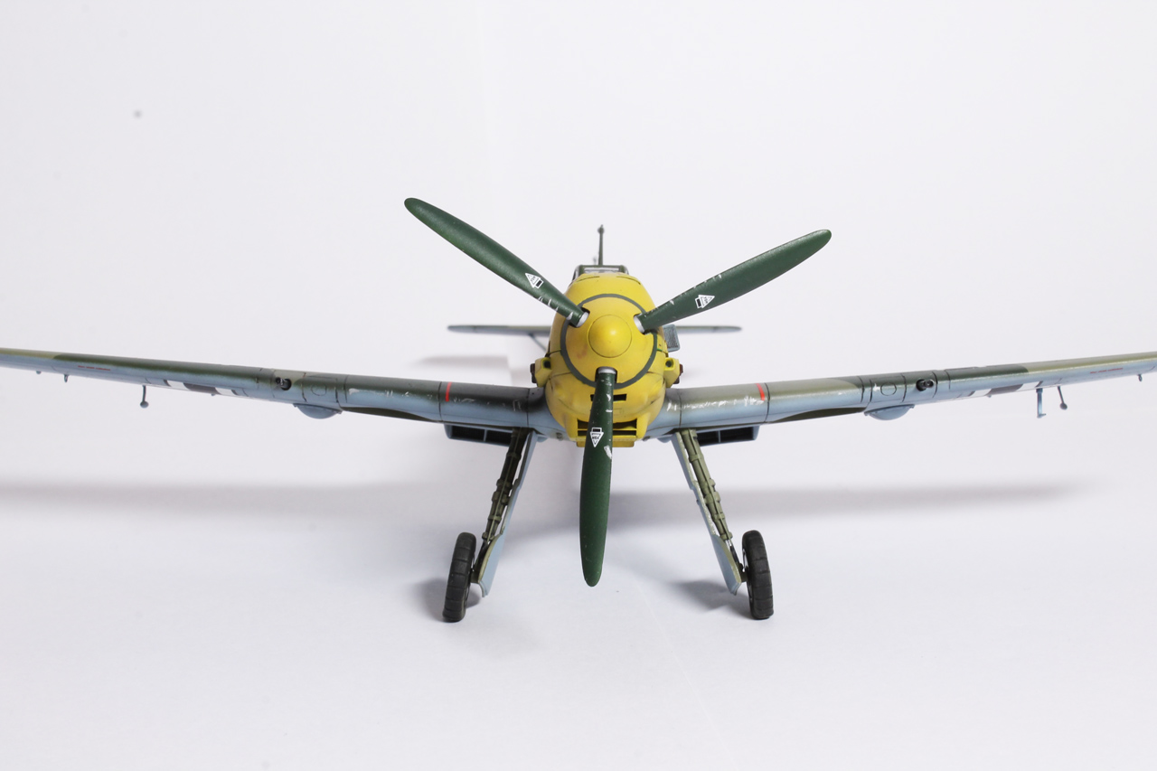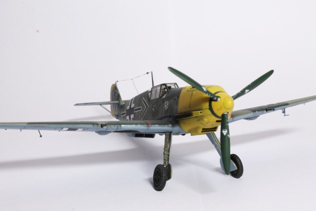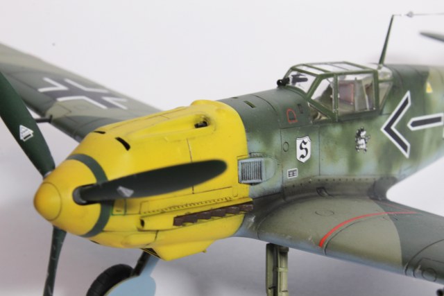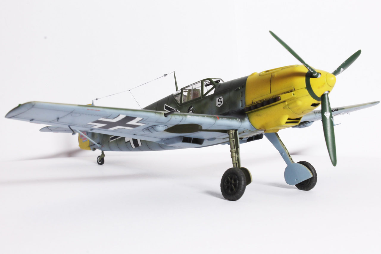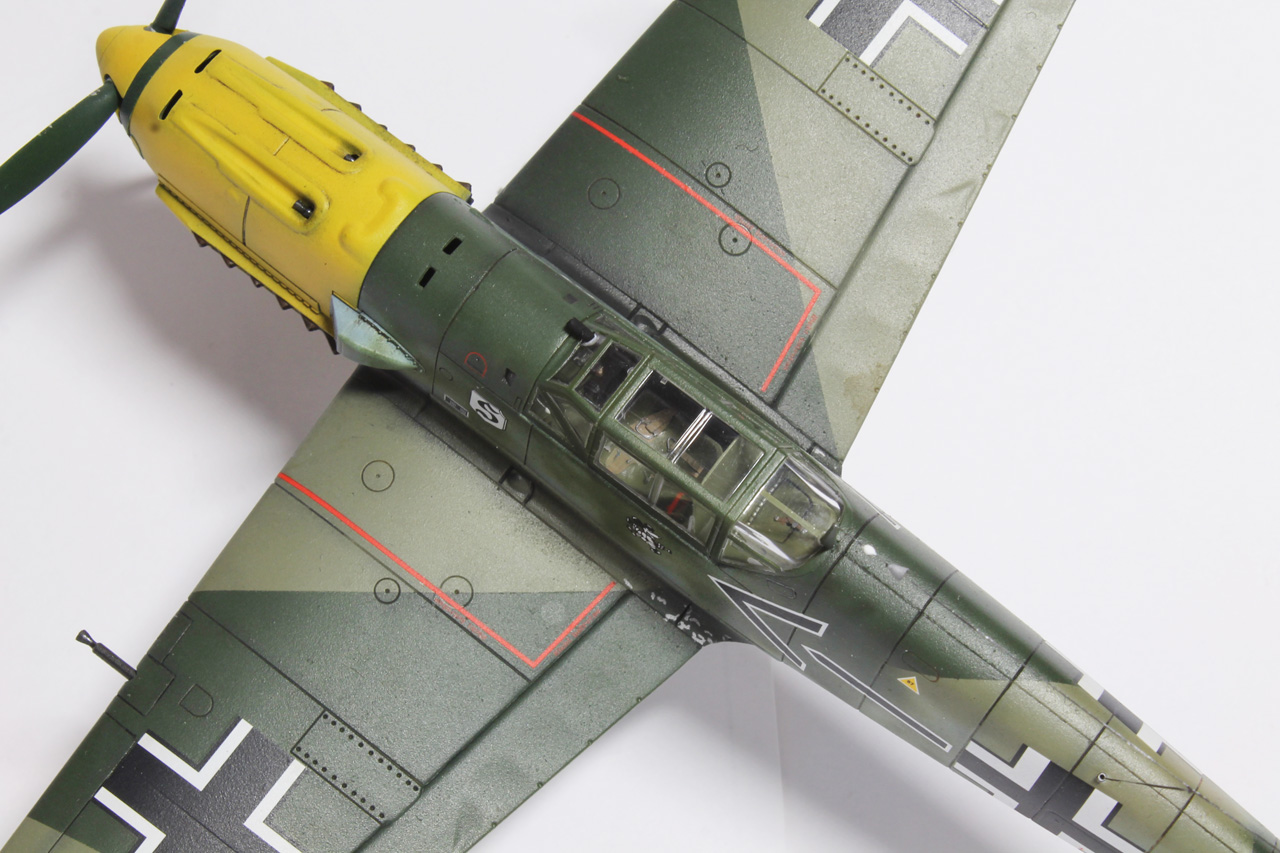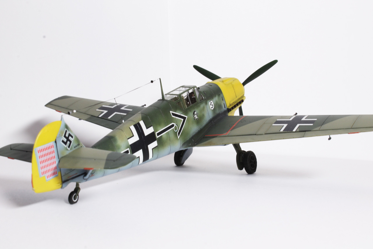 Здравия.Представляю ещё одного худого,на этот раз в 48-м масштабе.Набор тоже довольно известен,неплох по качеству,отлично собирается.Из недостатков грубоватая мелочёвка,очень,даже не так ,ООЧЕНЬ толстое остекление.Добавил только ремни в кабину,чуть доработал приборку(хотя толком всё равно ничего не видно из-за толстого фонаря,рассверлил стволы вооружения,выхлопные патрубки,прорезал кое какие отверстия,сделал шланги гидравлики на стойки,антенна нить Хобби+.Красил как всегда эмалями Акан,с окраской Галландовского 5819 в конец запутался,он в разное время нёс и разную окраску и разную маркировку ,победные марки на РН по разному были нанесены,был и с подвесным баком и с установленной системой GM1.Решил красить по инструкции от Эдуардовского Е-4,всё таки давно хотел построить эту легендарную машину.Расшивку выделял маслянной краской на бензине для зажигалок,чуть попачкал маслом и тамиевскими пудренницами.Финишное покрытие матовый лак Microscale/