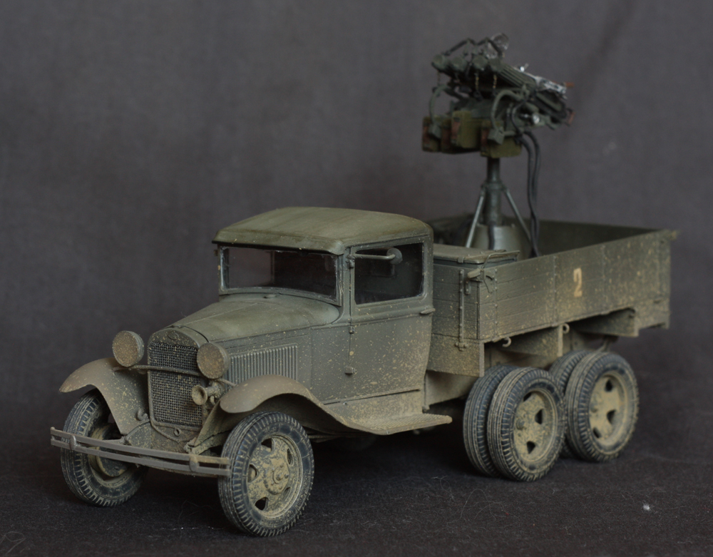 Давно уже появилась мечта иметь в коллекции ГАЗизик со счетверенным максимом. Как только появился ГАЗ-ААА от miniart, решил действовать: купил саму модель и отдельно ЗПУ(зенитно-пулеметную установку). К самому грузовику претензий почти не было, собирал практически "из коробки". ЗПУ пришлось допиливать, + доработки кузова связанные с установкой ЗПУ(ящик, помпа, шланги, упоры на борту).