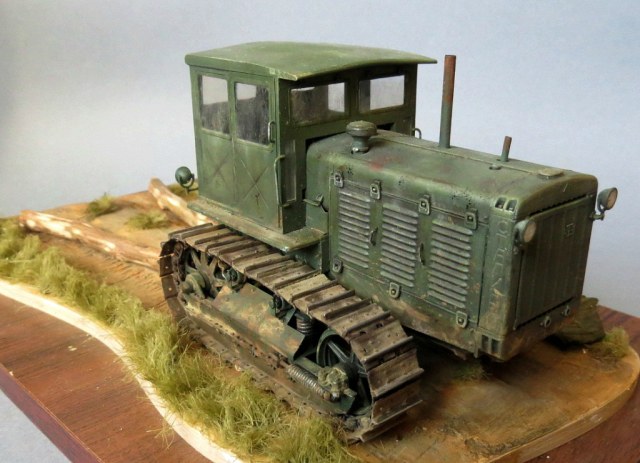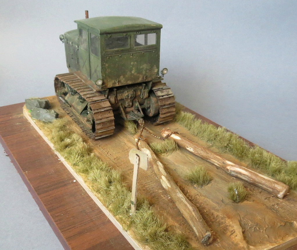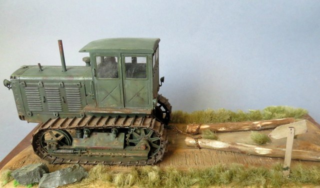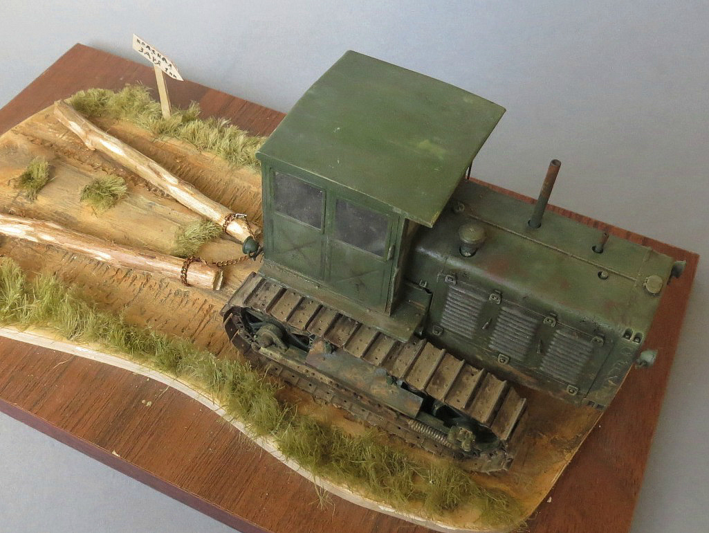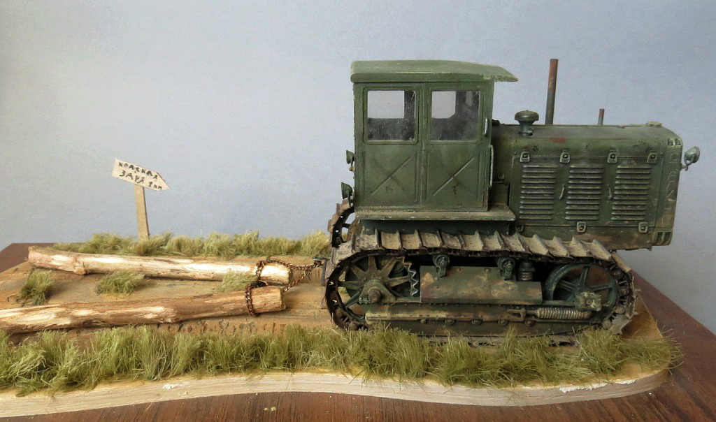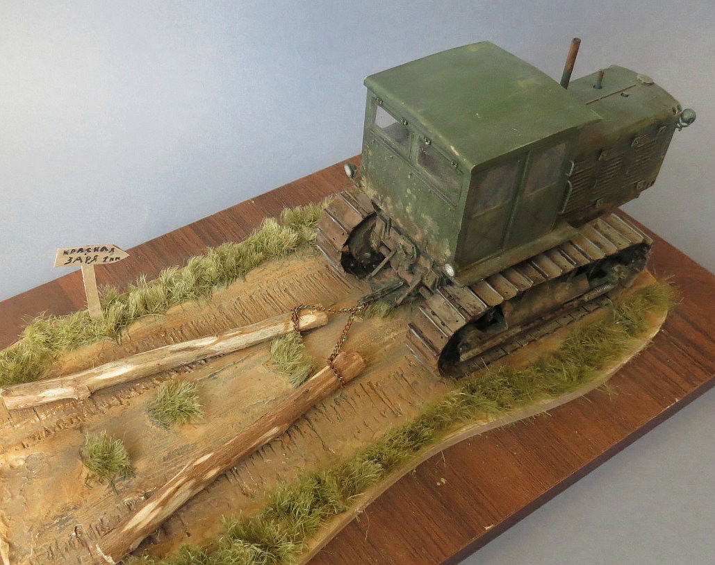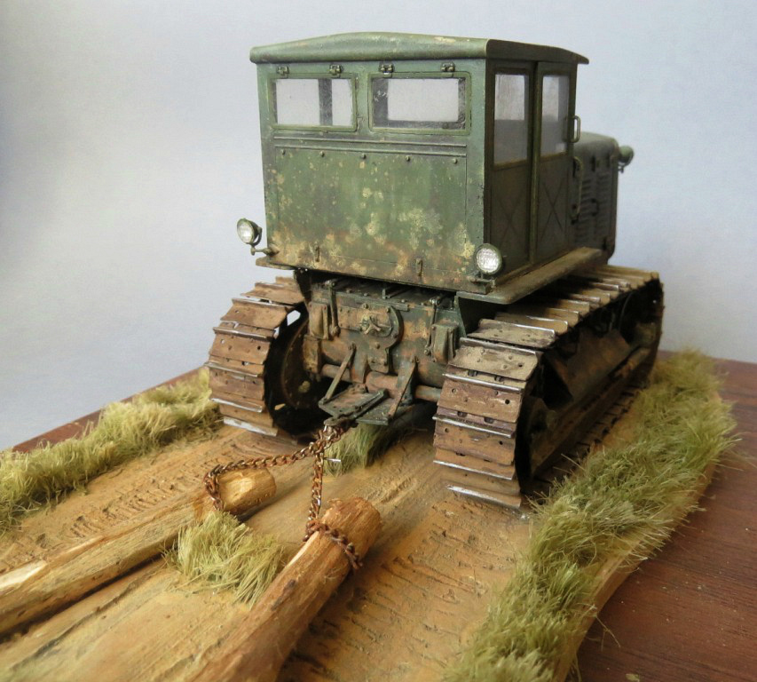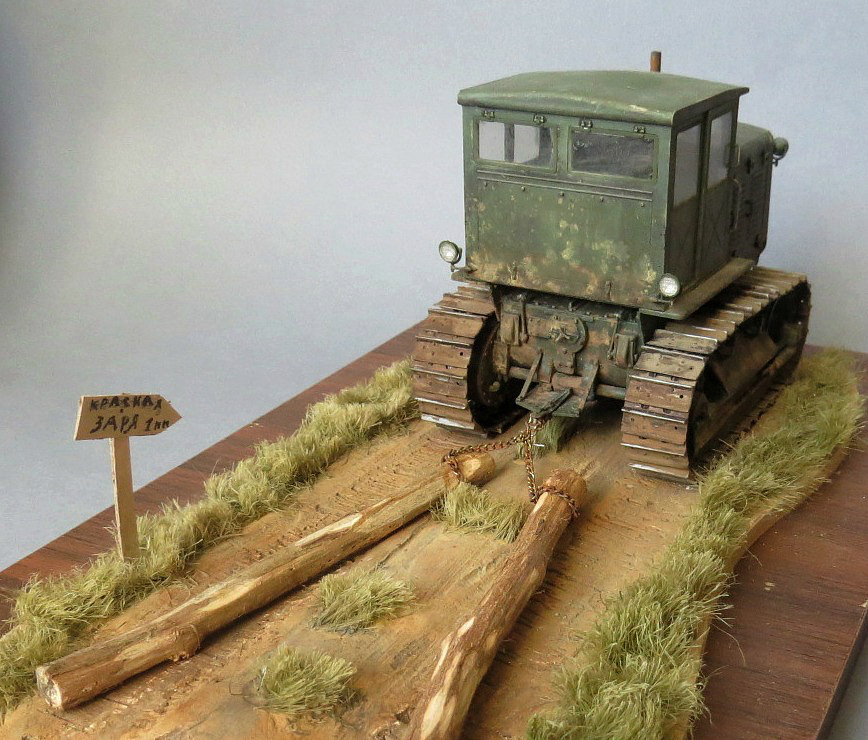 Трактор понравился! Только не понятно, кто им управляет и что ЧТЗ делает? Если прокатывает дорогу бревнами, то бревна для такого должны быть сбиты перекладиной, если просто буксирует, то при движении бревна сходятся параллельно....