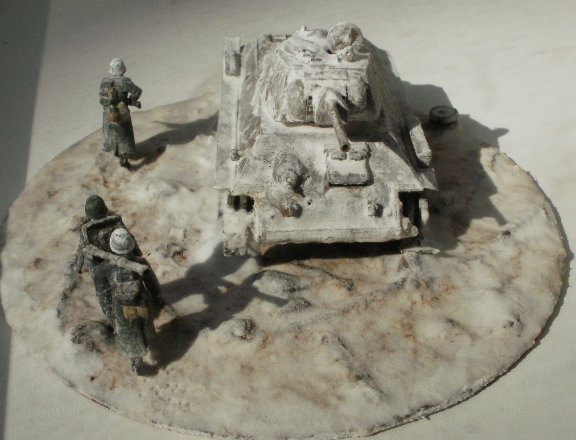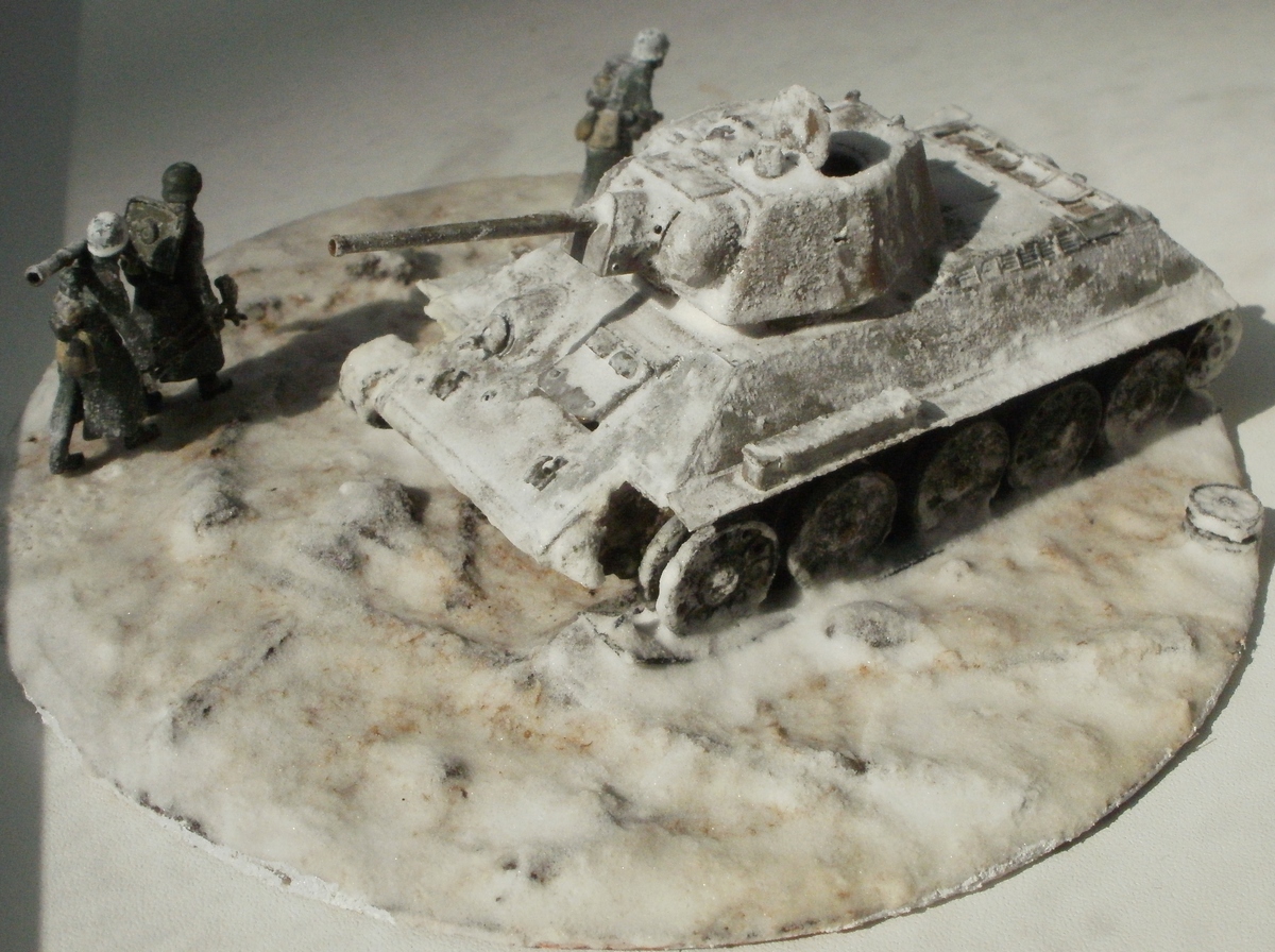 совершенно с вами согласен, косяк из-за того, что изначально 34ка была вполне себе боевая, разбил ее тогда, когда башня уже намертво в положении"салют" была))) ствол бы опустить и чуть от оси отвернуть саму башню-было бы живописнее) но уже как есть-в других работах постараюсь продумывать глубже сюжетную линию)