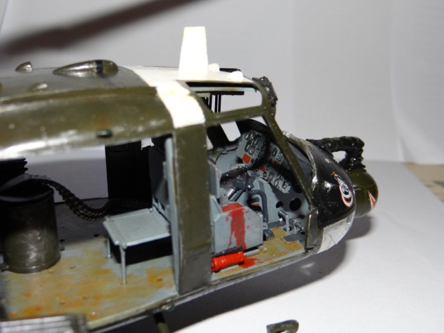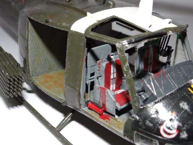В этом случае над деталировкой кабины хорошо работать надо, да и фото повреждёных смареть. Ну лан лобовухи нет, а центральная стойка то куды делась? А шов на обтекателе гранатомета почему не убран? А сиденье в грузовой кабине почему в общий окрашено? А на полу что: кровь запекшаяся али грязь?