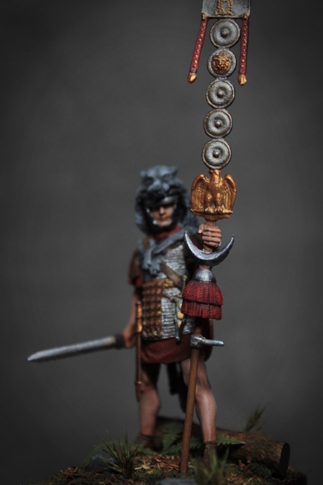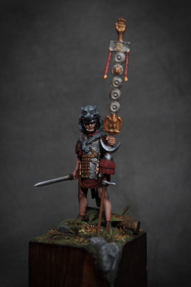 Вячеслав, хотя бы что-то знает и читал, а что прочитали про сигниферов вообще, и про римскую армию, в частности - вы? Но, да, я должен заткнуться, ибо право обращать внимание (о, это немыслимо) на ваши недочеты может лишь "выставивший и покрасивший". И что он имеет право вам сказать? Как божественно выполнена обсыпка, присыпка и тонировка? Какие прекрасные дары природы и какая расчудесная имитация папоротника?