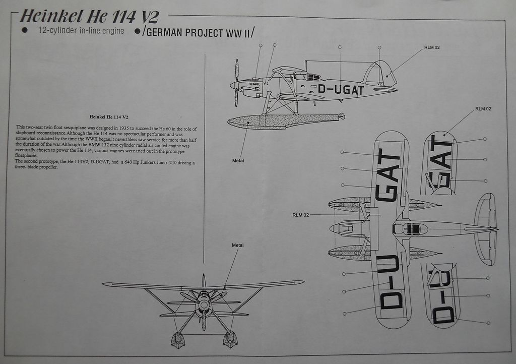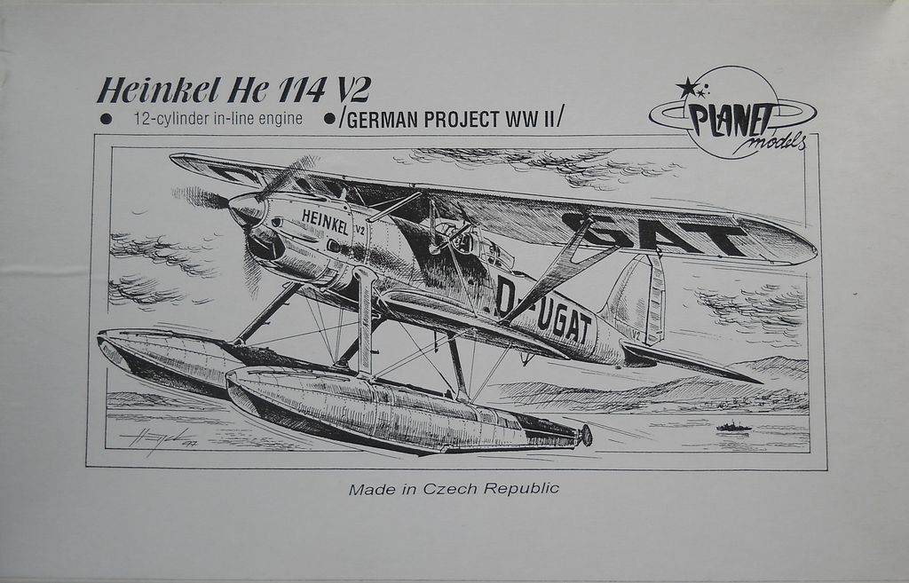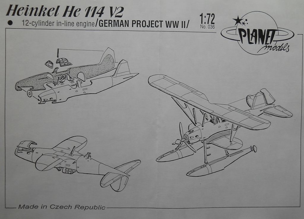 Модель из смолы от фирмы Planet Models в масштабе 1/72 (номер по каталогу 036) упакована в картонную коробку. В данном наборе даётся вариант машины He 114V-2 с двигателем Jumo-210Еа.