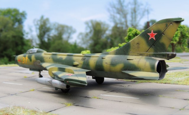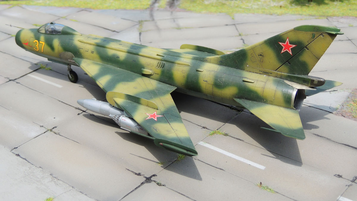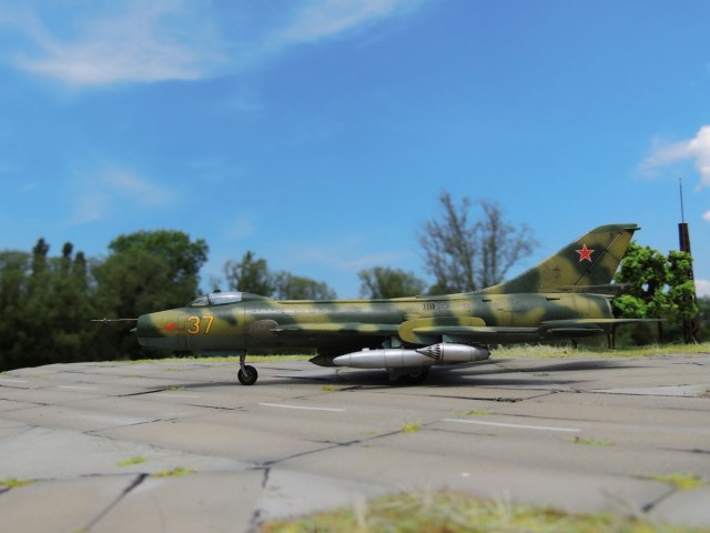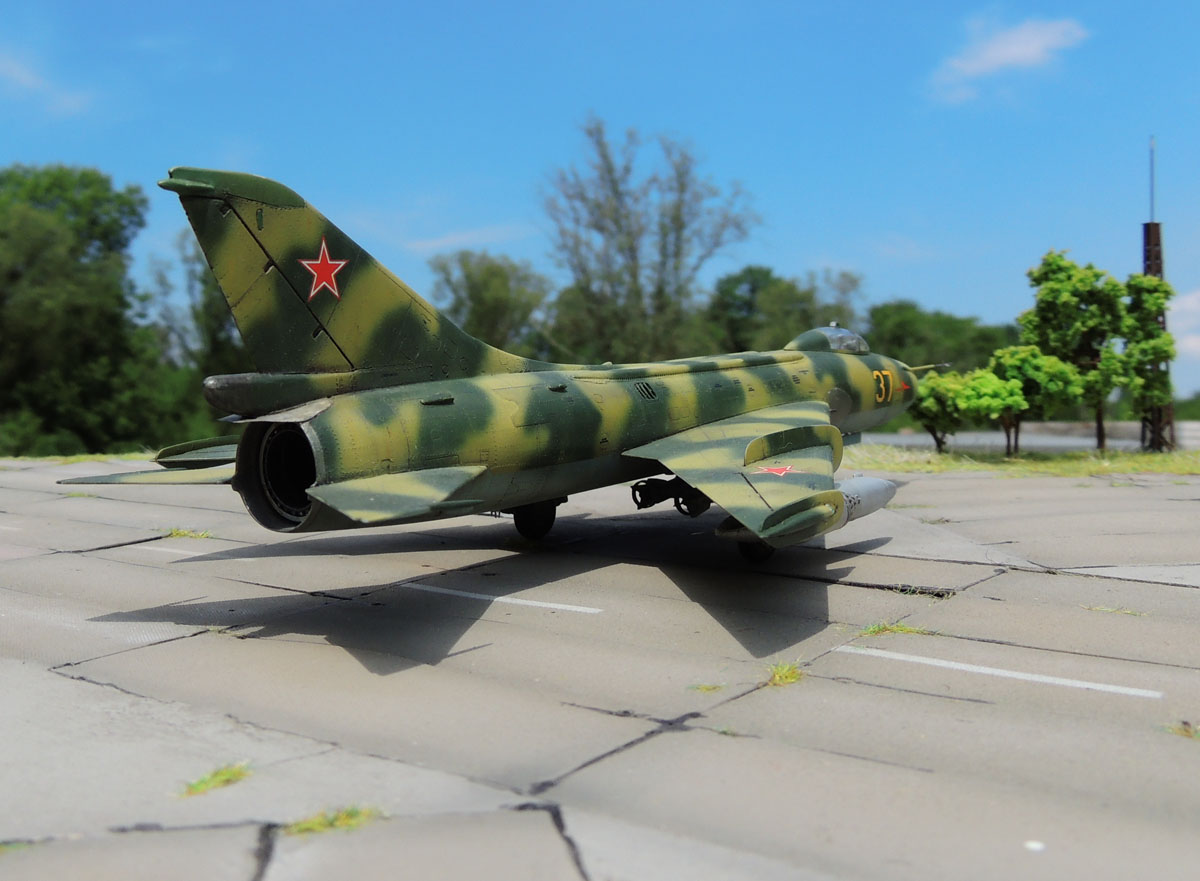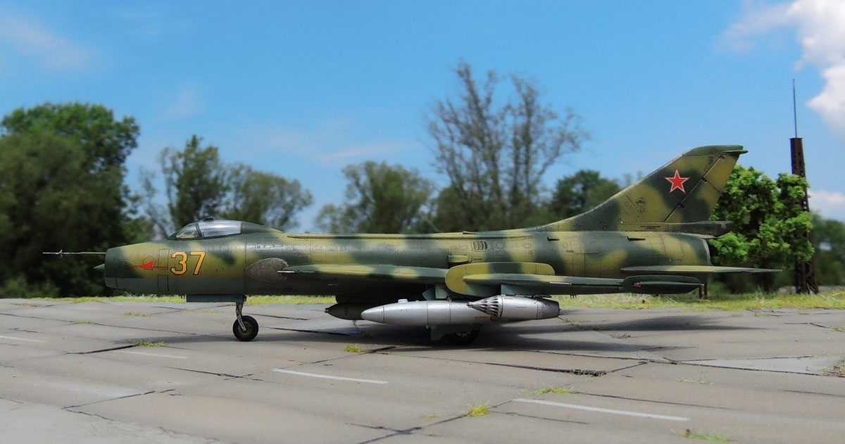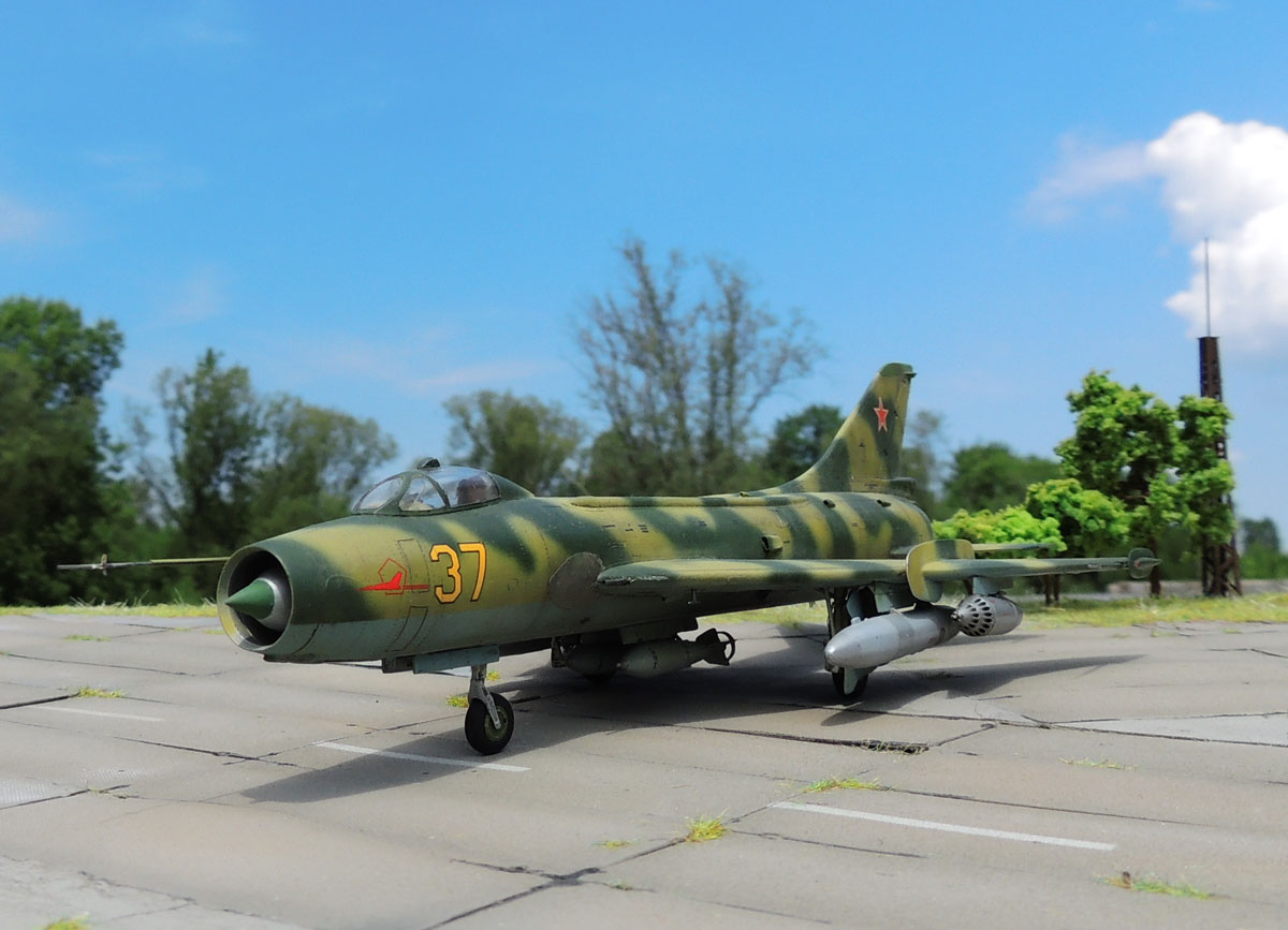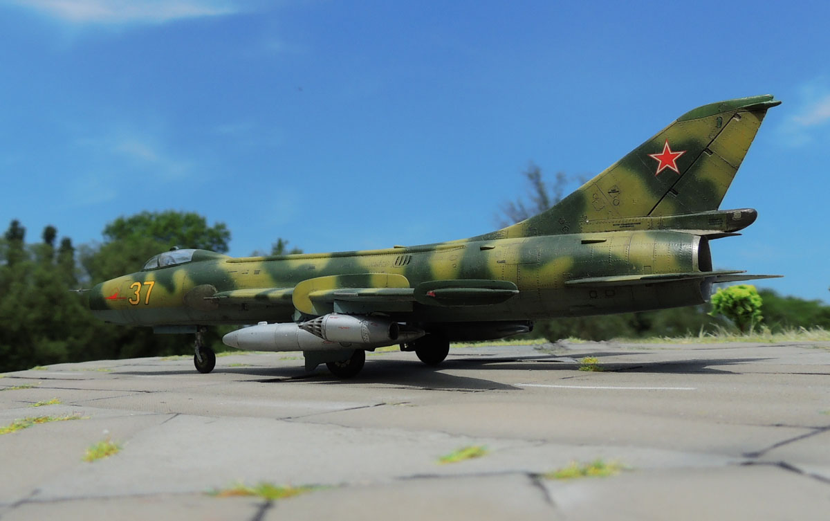Небольшая конверсия модели от моделсвит, приладил киль от КР, когда родного моделсвитовского Су-7БМК не было даже в анонсах, однако стройка затянулась... Более подробное описание размещу попозже, в принципе кому не лень, то можно посмотреть сказку. Во время фотосессии потерял, ьпоходу безвозвратно створку шасси так что звиняйте, как говорит коллега и земляк Сварщик:"карту выкинул ЗШ надел!"