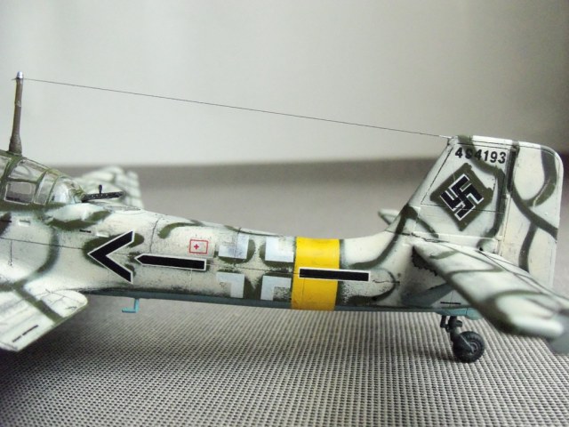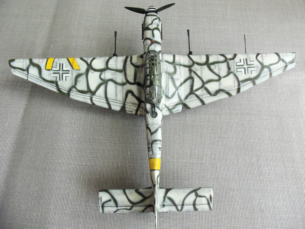 Переднюю кромку крыла перекрасить бы а то цвет нижних поверхностей перелезает через границу верхнего цвета.По аккуратней бы еще общую покраску но вероятней всего так и должна выглядеть фронтовая машина в зимнике.