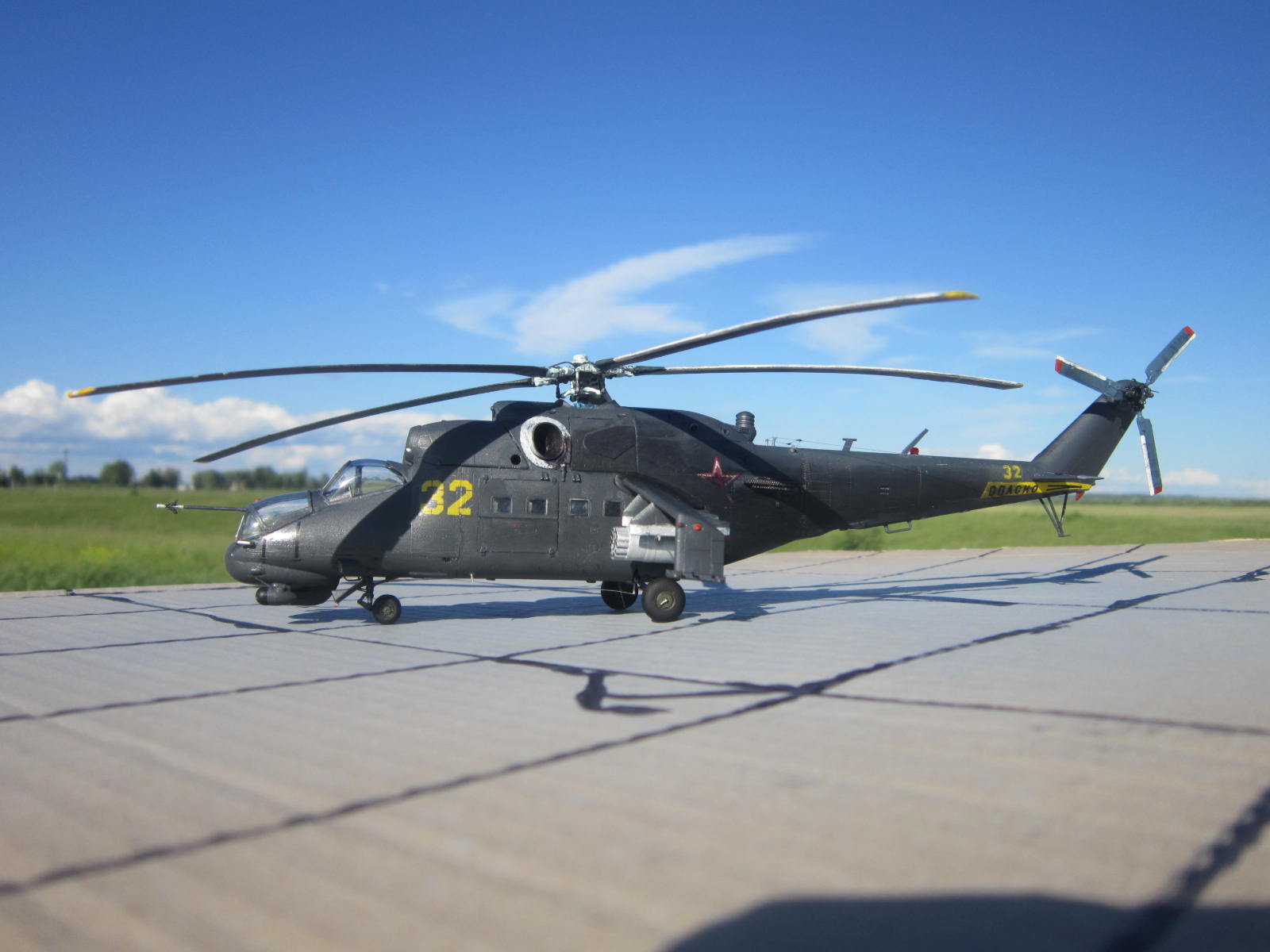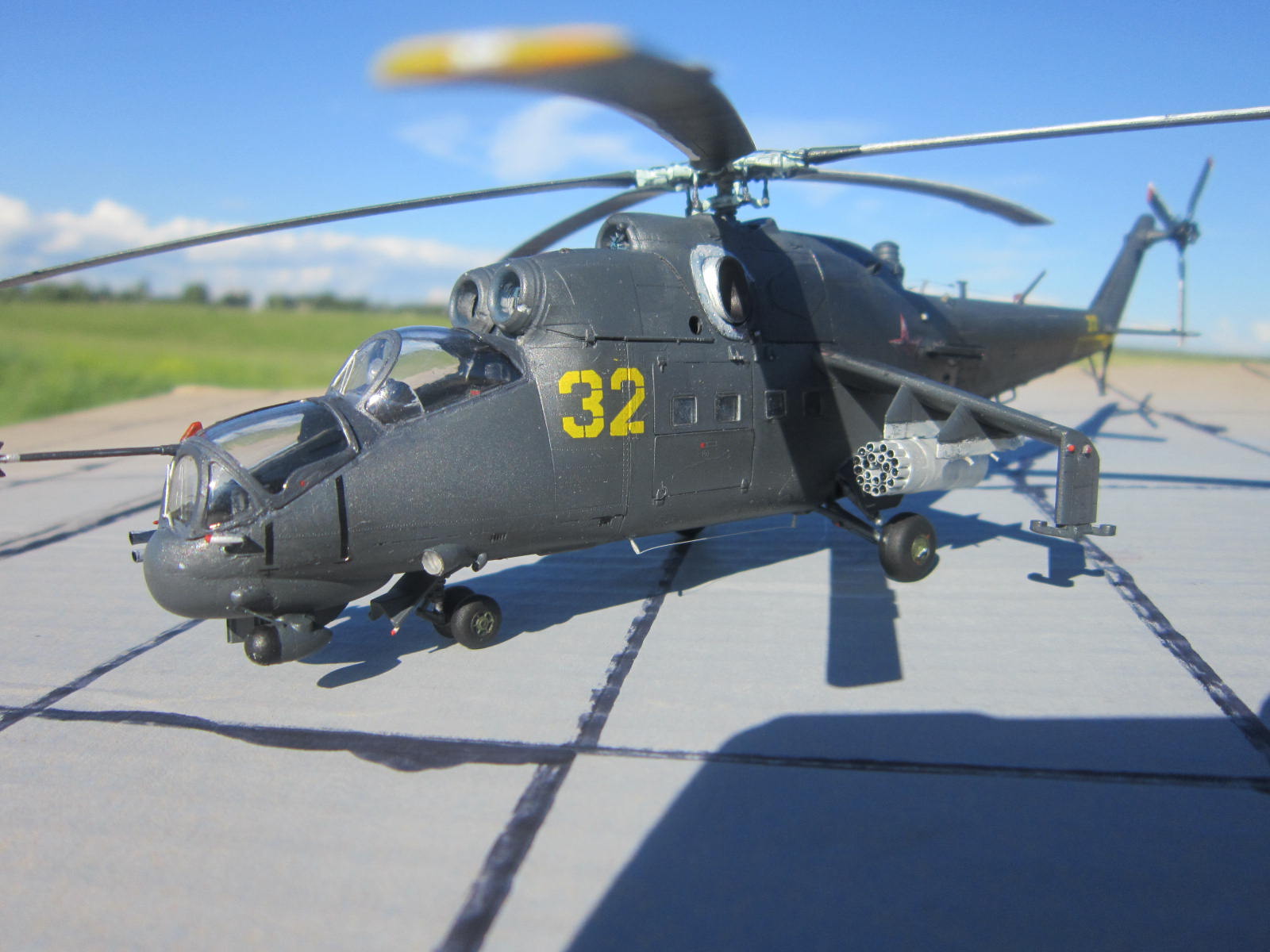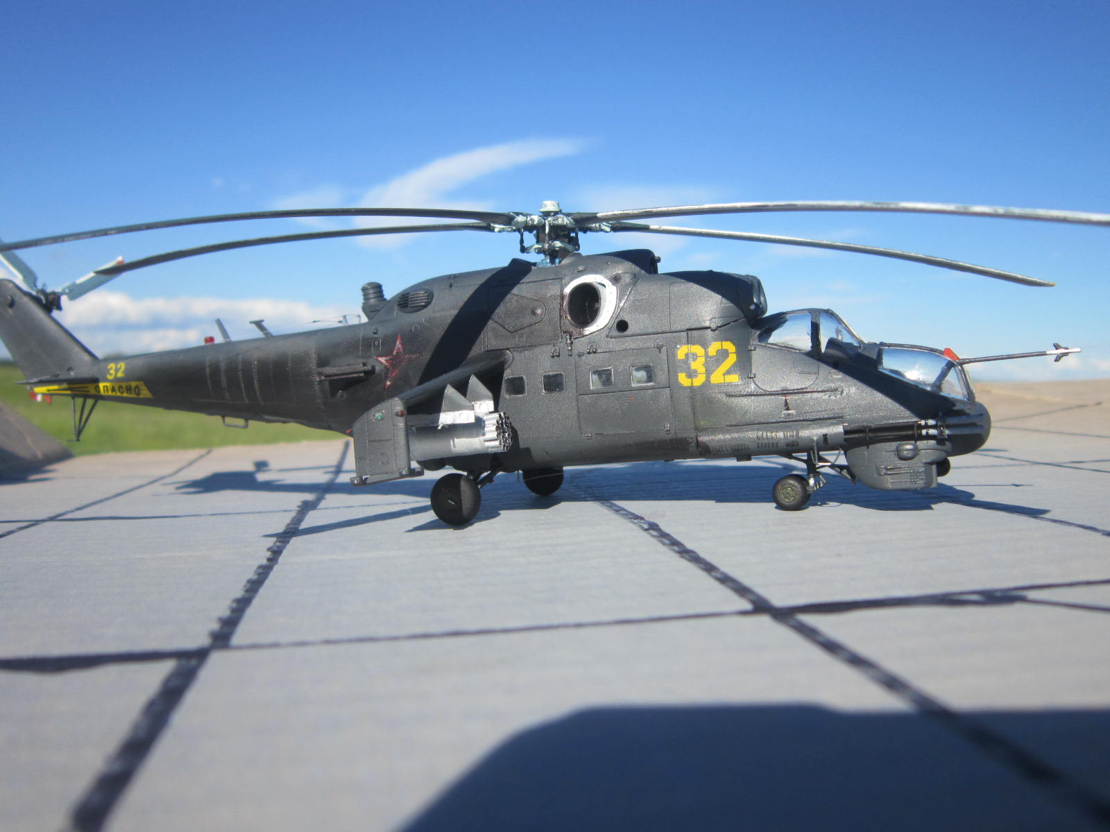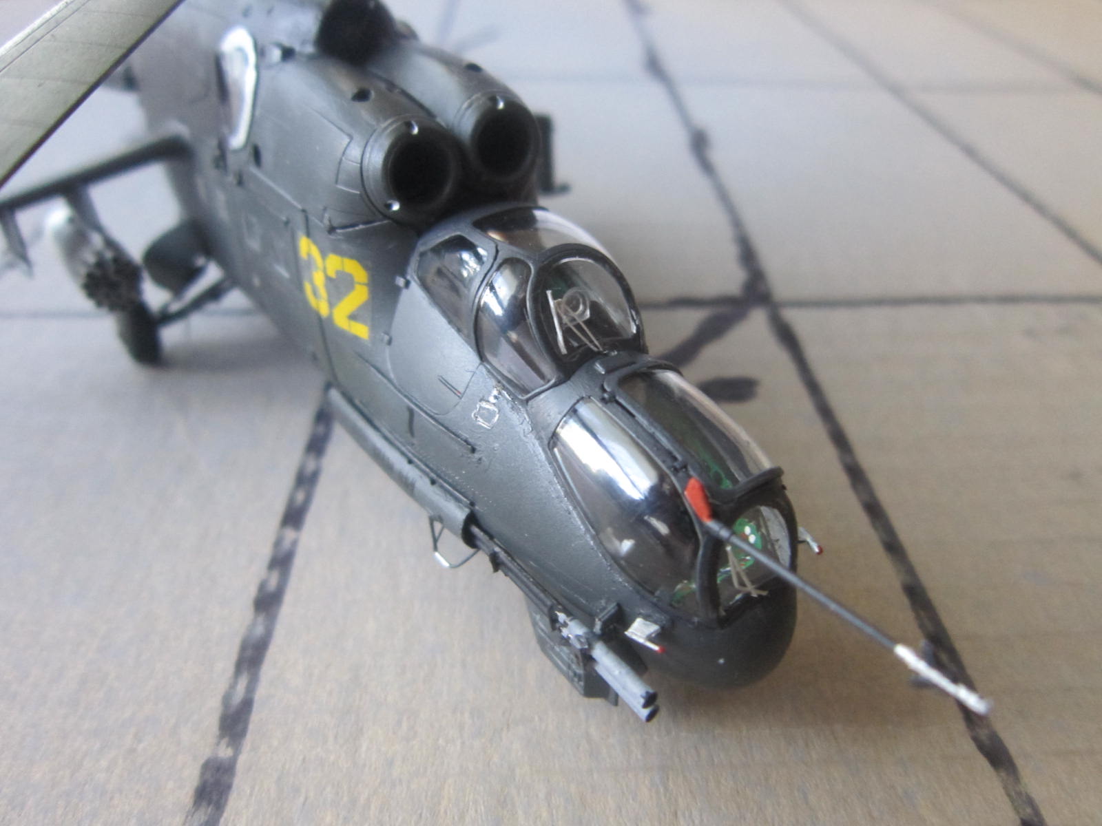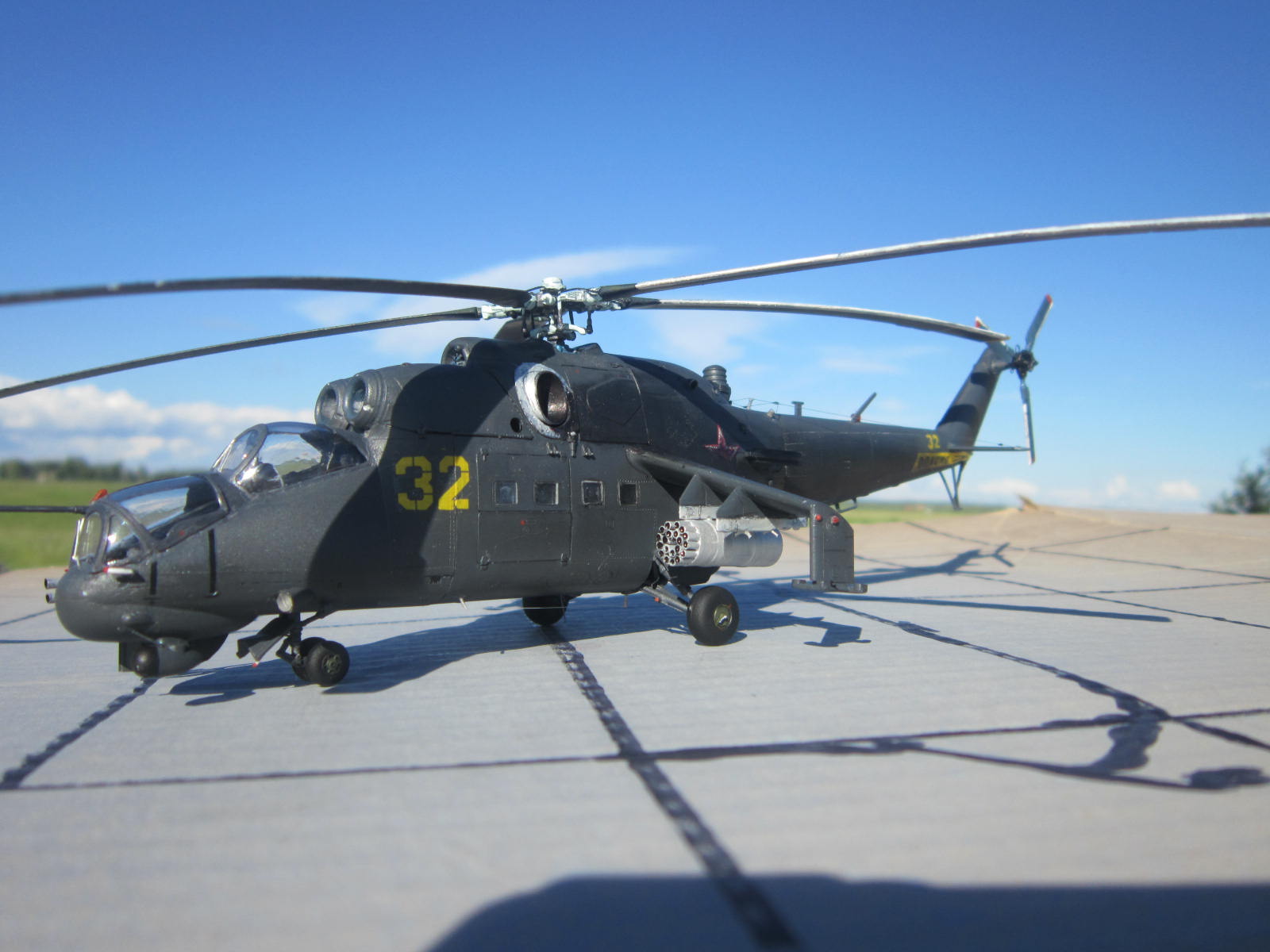 Доброго всем время.Представляю модель 32 го борта 344ЦБПиПЛС. Набор в представлении не нуждается,может даже кому надоел.Перейду к модели;Переделал перед он из холодной сварки.Пушка ГШ из литника.Добавил проводку на НВ иРВ.На шасси гидравлику.Тросовые антенны.Модель закоптил так как после тактически-учебных полетов и стрельб.Спасибо за внимание.