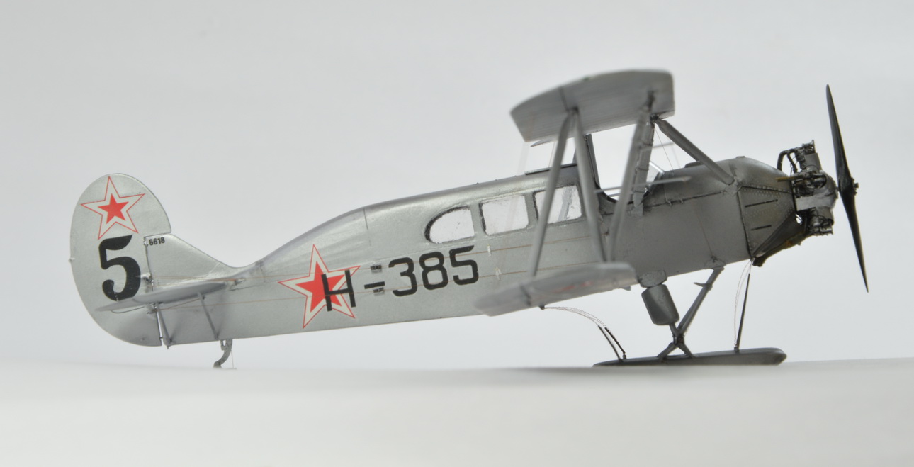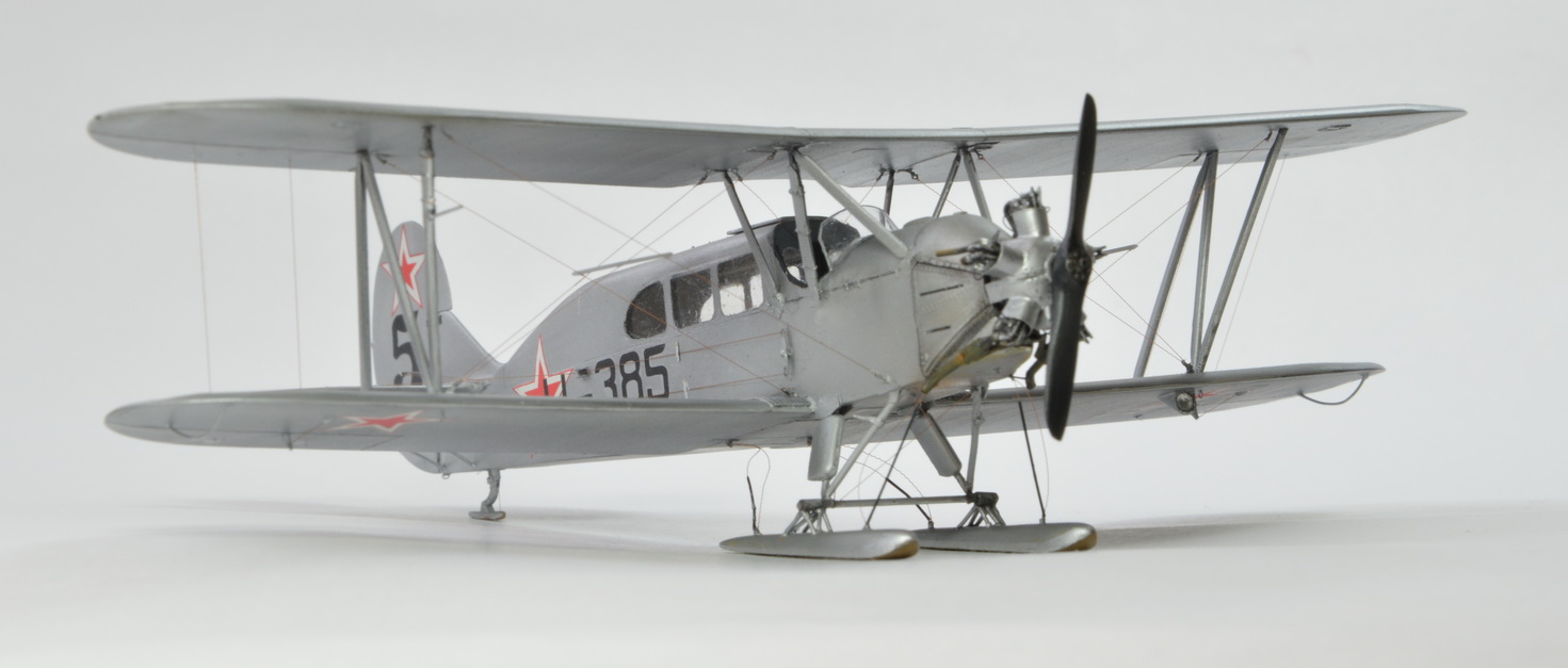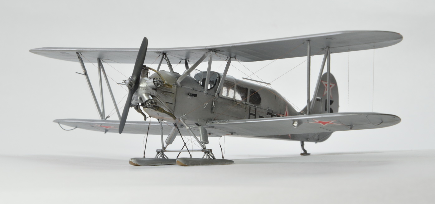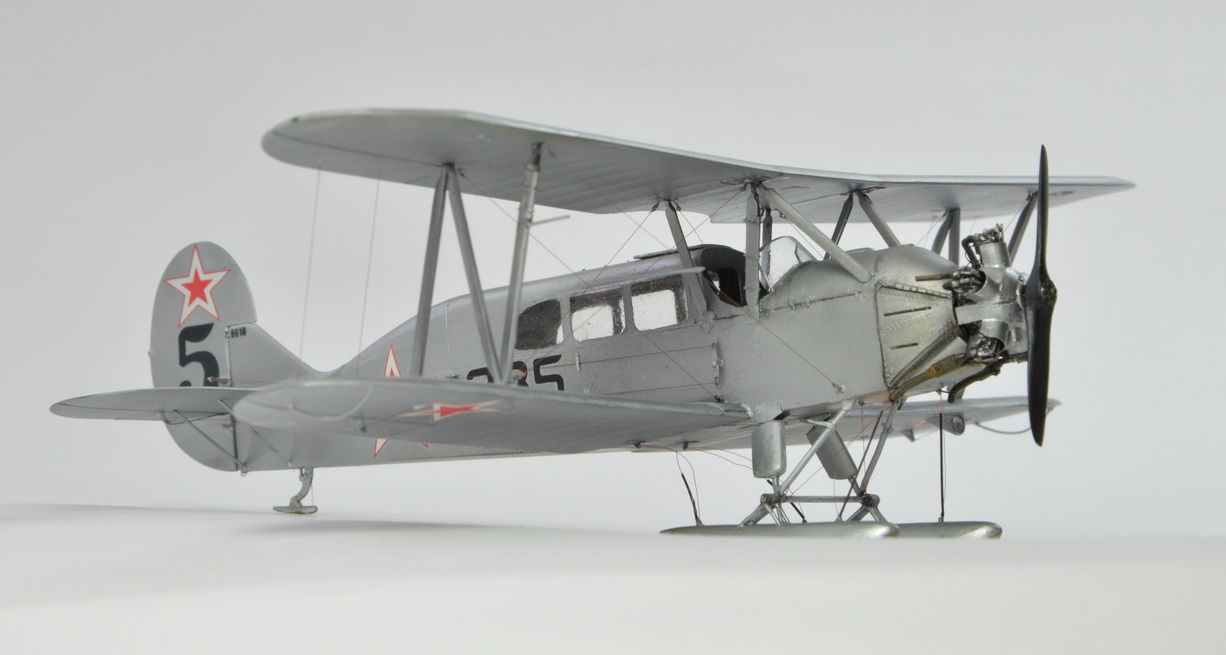 Модель строилась в рамках ГБ "Полярная авиация".За основу был взят набор У-2ВС от ICM. Переделка сводилась к изготовлению пассажирского отсека,кабины пилота,сдвинутой вперёд ,относительно стандартного У-2,удлинению носовой части. Материалы- прозрачный пластик от Тамии и обычный из запасов.Так же заново изготовлены центральные стойки.Двигатель от Эльф.Зимний капот доработан под поздюю версию. Винт изготовлен заново .Родной из набора не того вращения. Ну и по мелочи было довольно много работы.На фото всё видно. Окрашено Ганзой,расчалки из бантика. Ветка по постройке здесь http://www.karopka.ru/forum/forum321/topic16592/