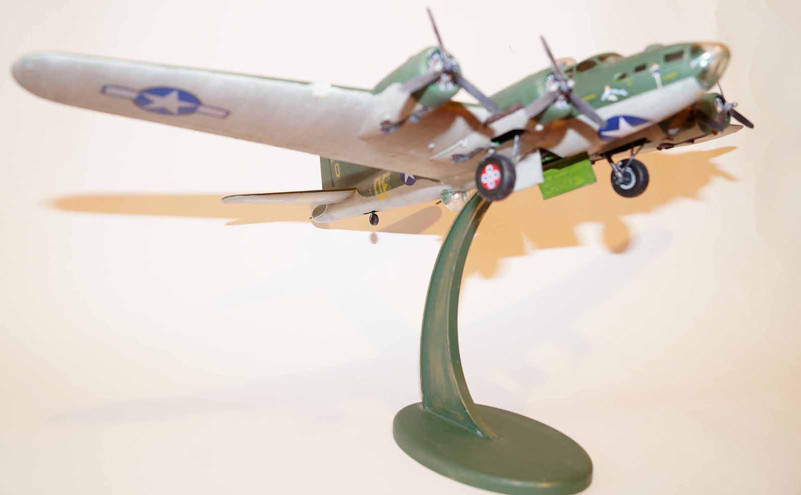 На честный суд выставляю данный самолет . Некоторые детали в виде стволов пулемёта были повреждены во время нападения моего наследника , ибо сын настоящий , чистокровный славянин ( трех лет от роду) , и уже в этом возрасте решил развязать войну с американской военщиной. Проявив отсутствие патриотизма , пришлось спасать вражеский самолет. Поэтому , что есть , то есть ! Ремонтировать уже было просто лень . Да и другую модель начал. Поэтому , как то не до него стало Boeing B-17 Flying Fortress («Летающая крепость») — первый серийный американский цельнометаллический тяжёлый четырёхмоторныйбомбардировщик.