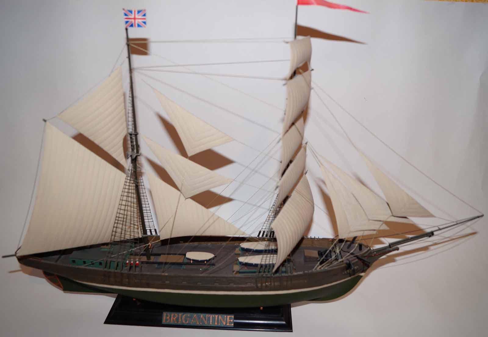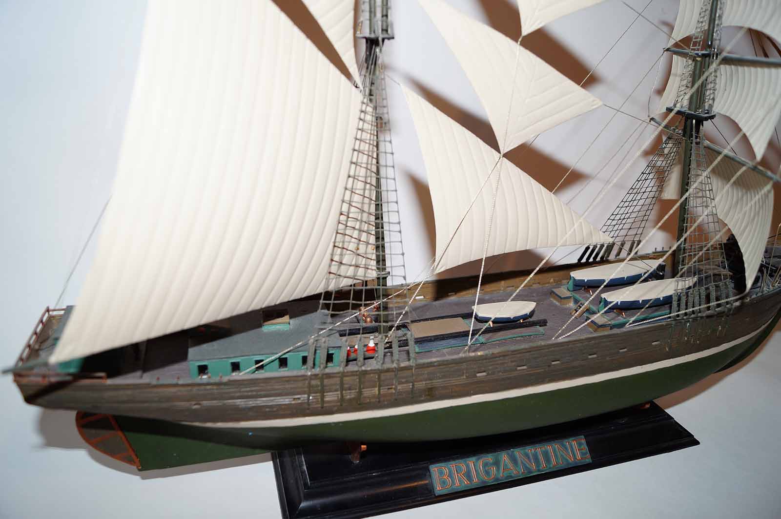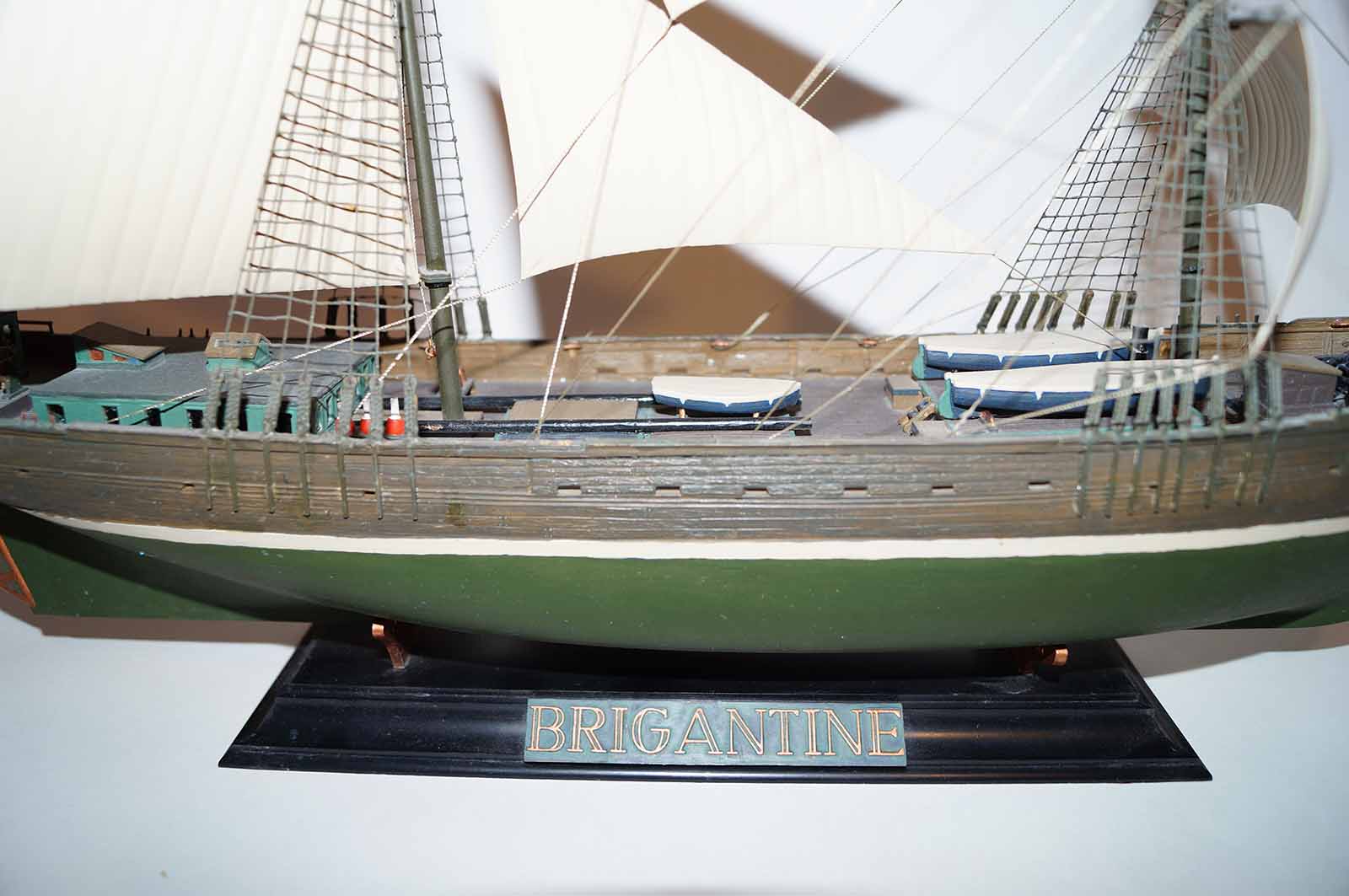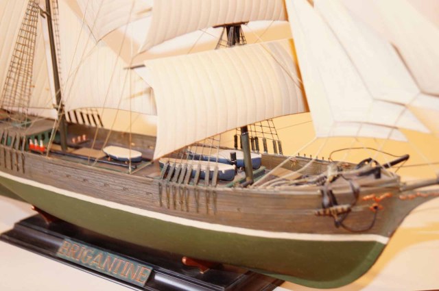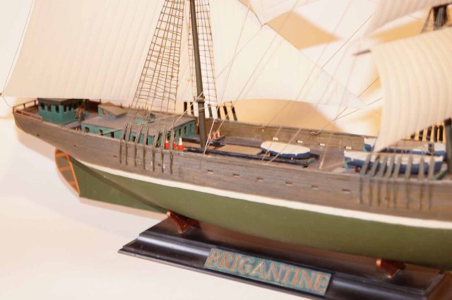 Эту модель бригантины мне подарила супруга на 23 февраля . На сборку ушло около трех месяцев . Ленив . Каяться не буду ! И на покраску около недели . Старался проработать палубу и фальшборта , дабы была хорошо видна фактура дерева. Вроде получилось . Остальное выношу на честной суд уважаемых форумчан . Буду счастлив увидеть безумное восхищение моим художеством . И буду безумно рад конструктивной критике .