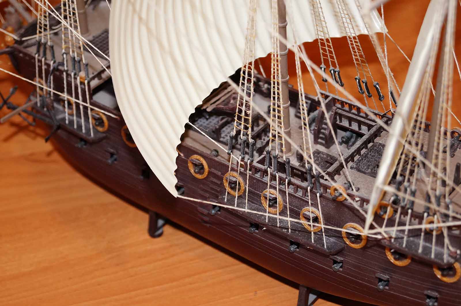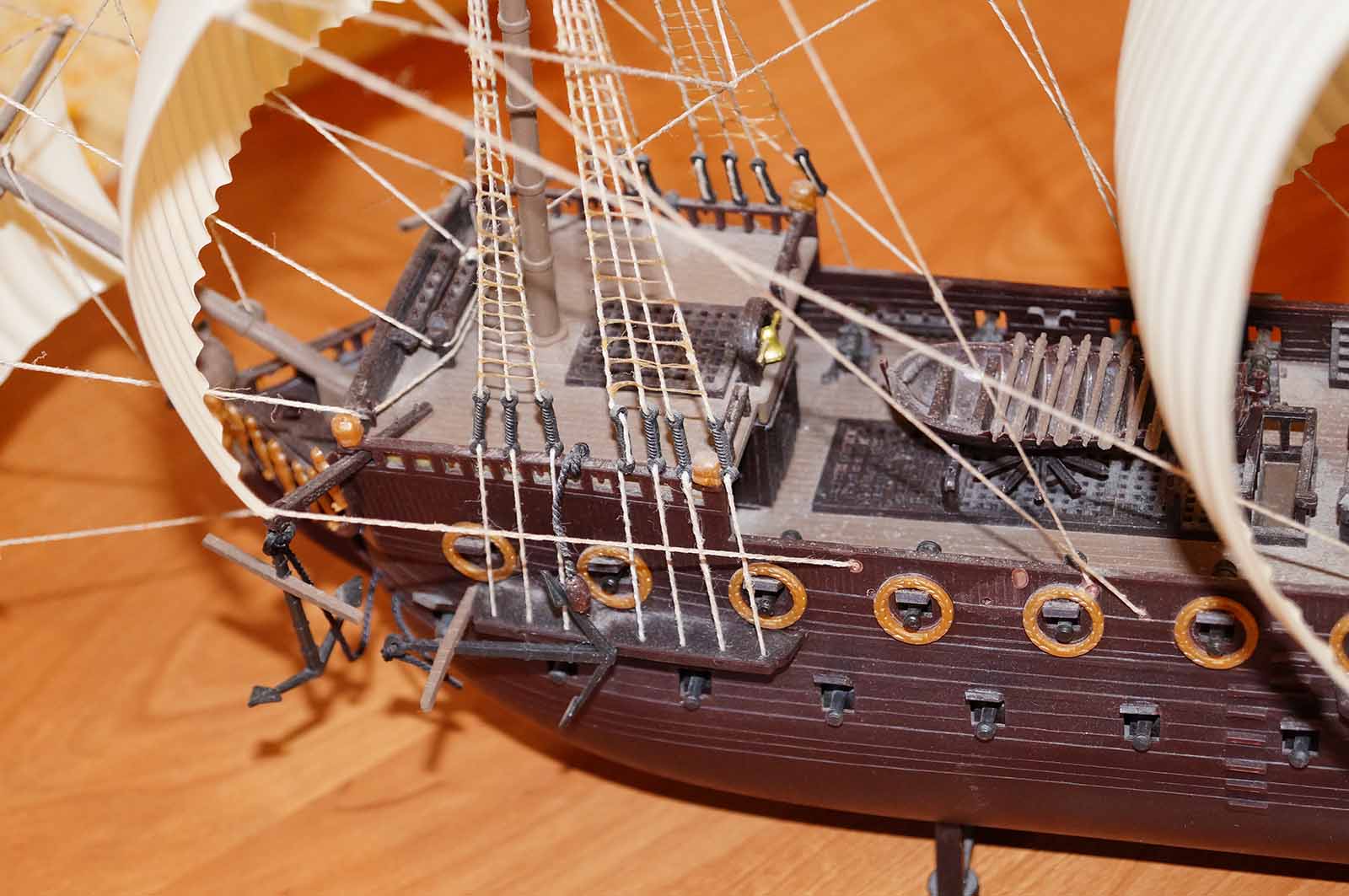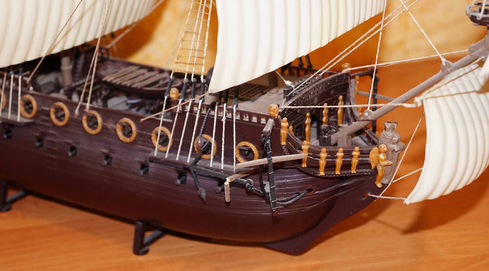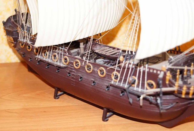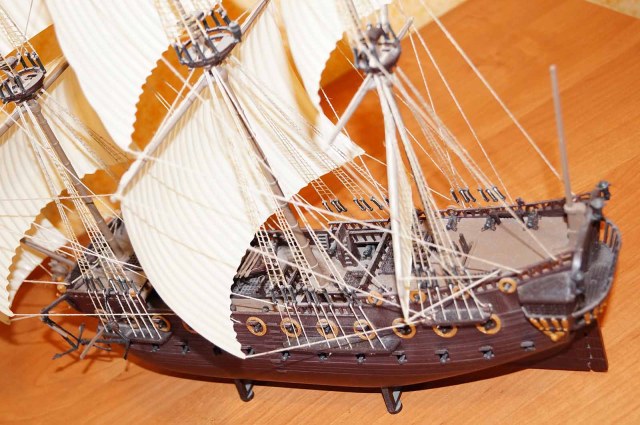 Есть , конечно мыслишка покрасить в надлежащий вид, но как представлю, что ванты и такелаж придется менять , становится , мягко говоря не по себе ! Скорее всего не буду возвращаться к прошлым моделям . Будем идти вперед...Под флагом Веселого Роджера !