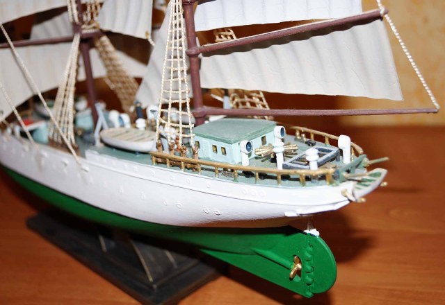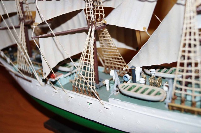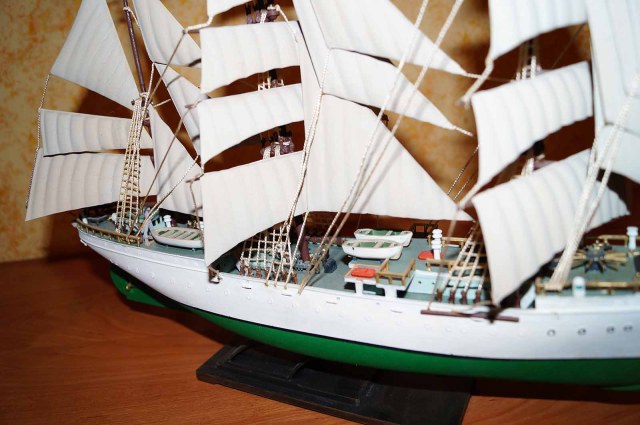 Не сложились у меня отношения с сим славным парусником . Поэтому и доделывал просто потому, что надо было доделать. Покрасил и задвинул подальше на полку. Ибо из далека огрехи хуже видны .
