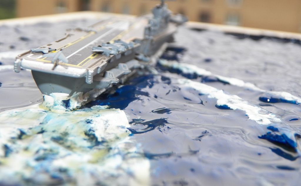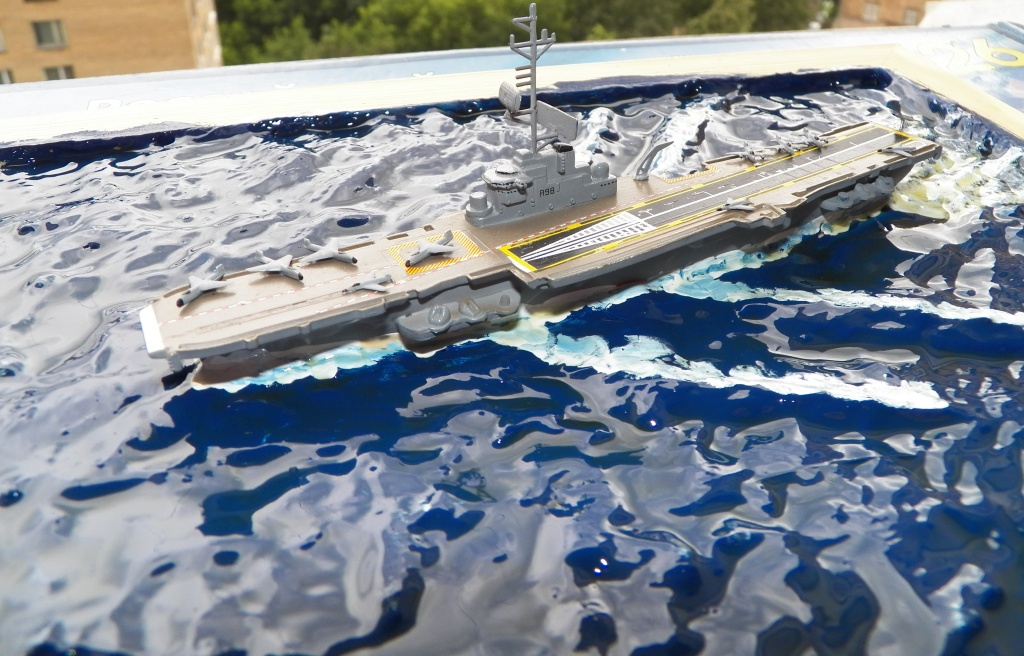 Всем привет, решил попробовать себя в таком интересном жанре, как морская техника с созданием водной поверхности. Первый блин конечно вылез комом, по крайней мере на фото это выглядит именно так. Масштаб решил взять самый маленький 1:1750, и места мало занимает и моделька мне понравилась. Сам пластик это слезы, я плакал когда увидел объем работ на этой козявке, сплошной лишний облой и следы от толкателей, ужасно выглядело. В добавок потерялись стволы от пушек, не обессудьте. Ставить на воду этот корабль было решено еще до его покупки, так что создавал волны из шпатлевки по дереву и лака для пола, который оказался не совсем прозрачным, что можно увидеть на кильватерной струе. Буду рад советам по морю, это можно сказать самое интересное в этой тематике, приятного просмотра.