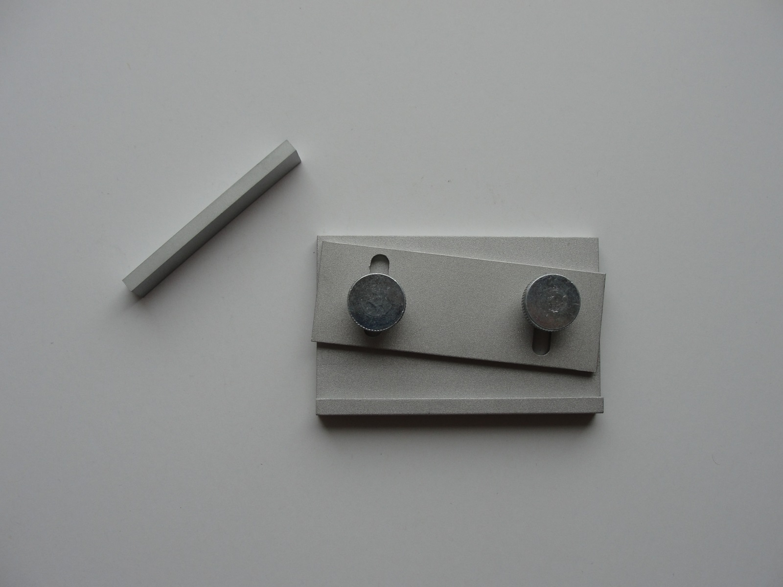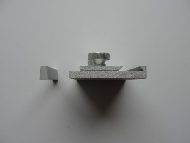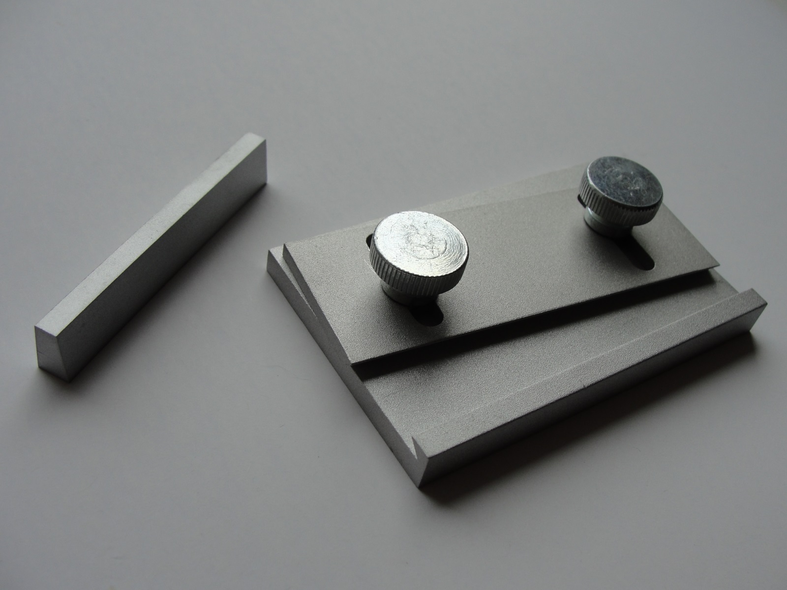 The tool parts - base, sliding side and holding stick - are made of aluminium, with steel wing head screws or thumb screws for easy manipulation.