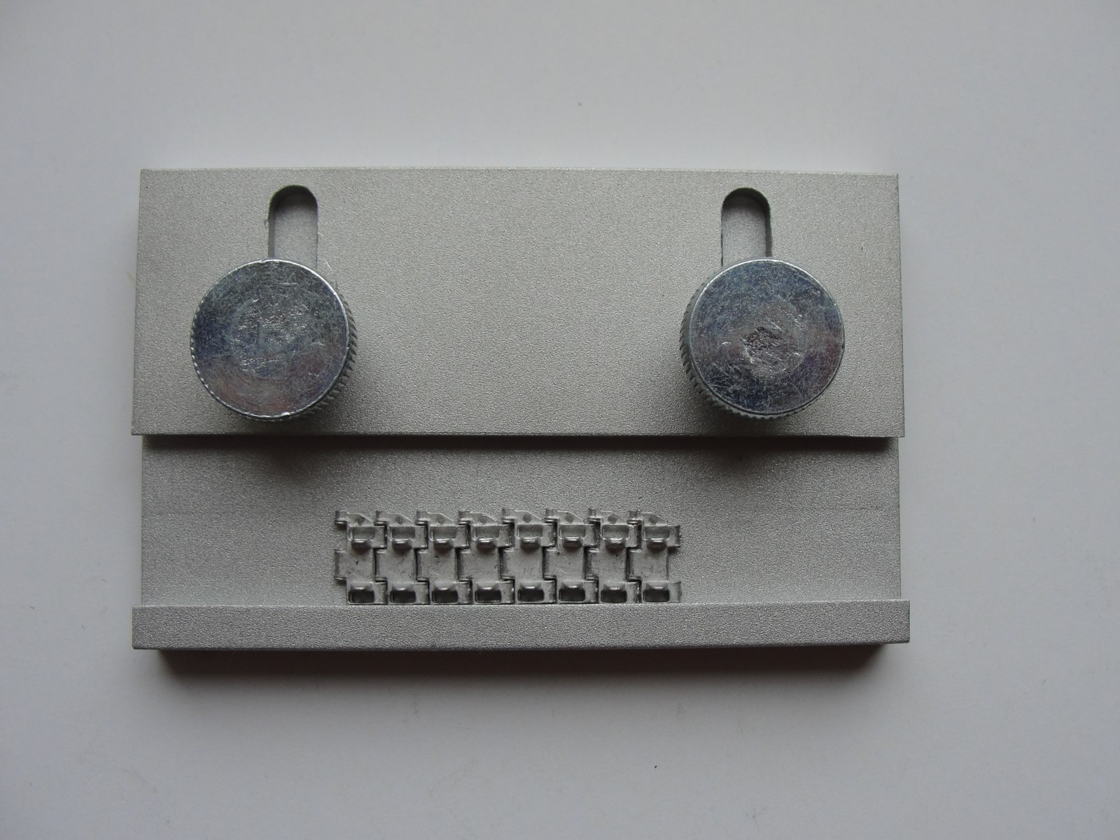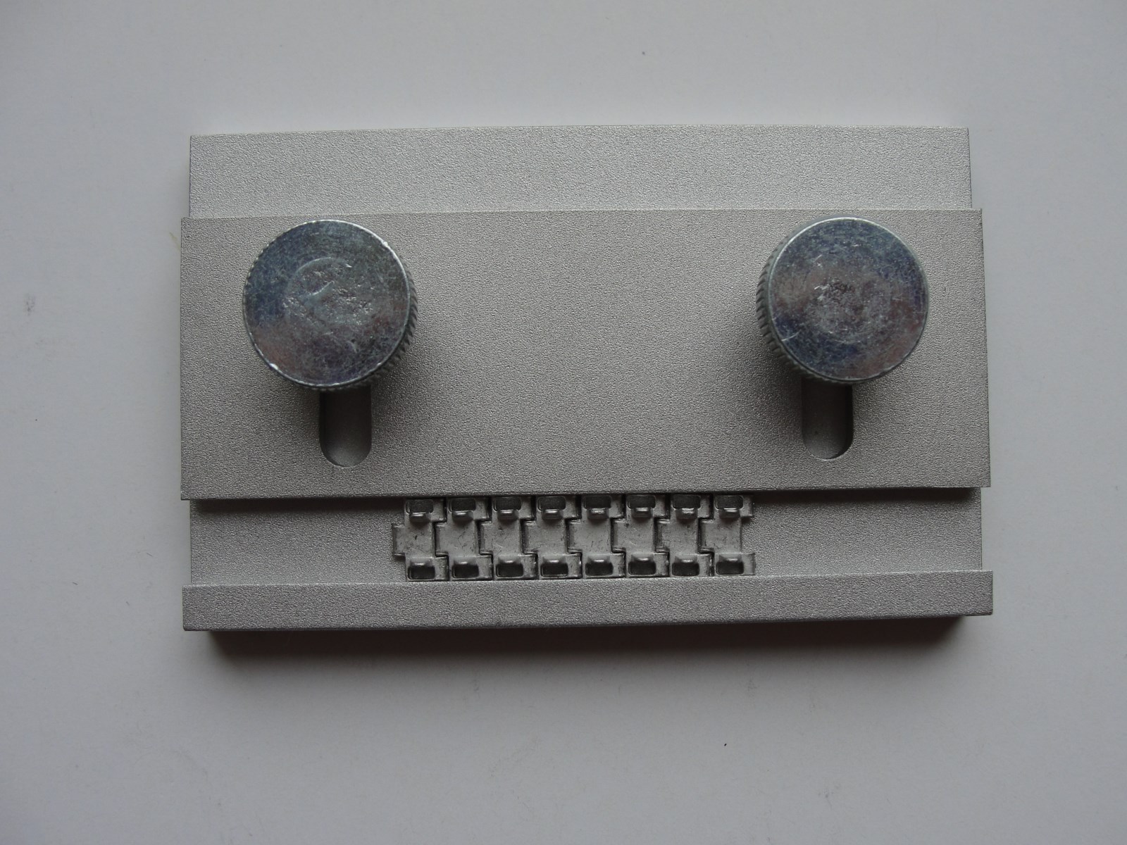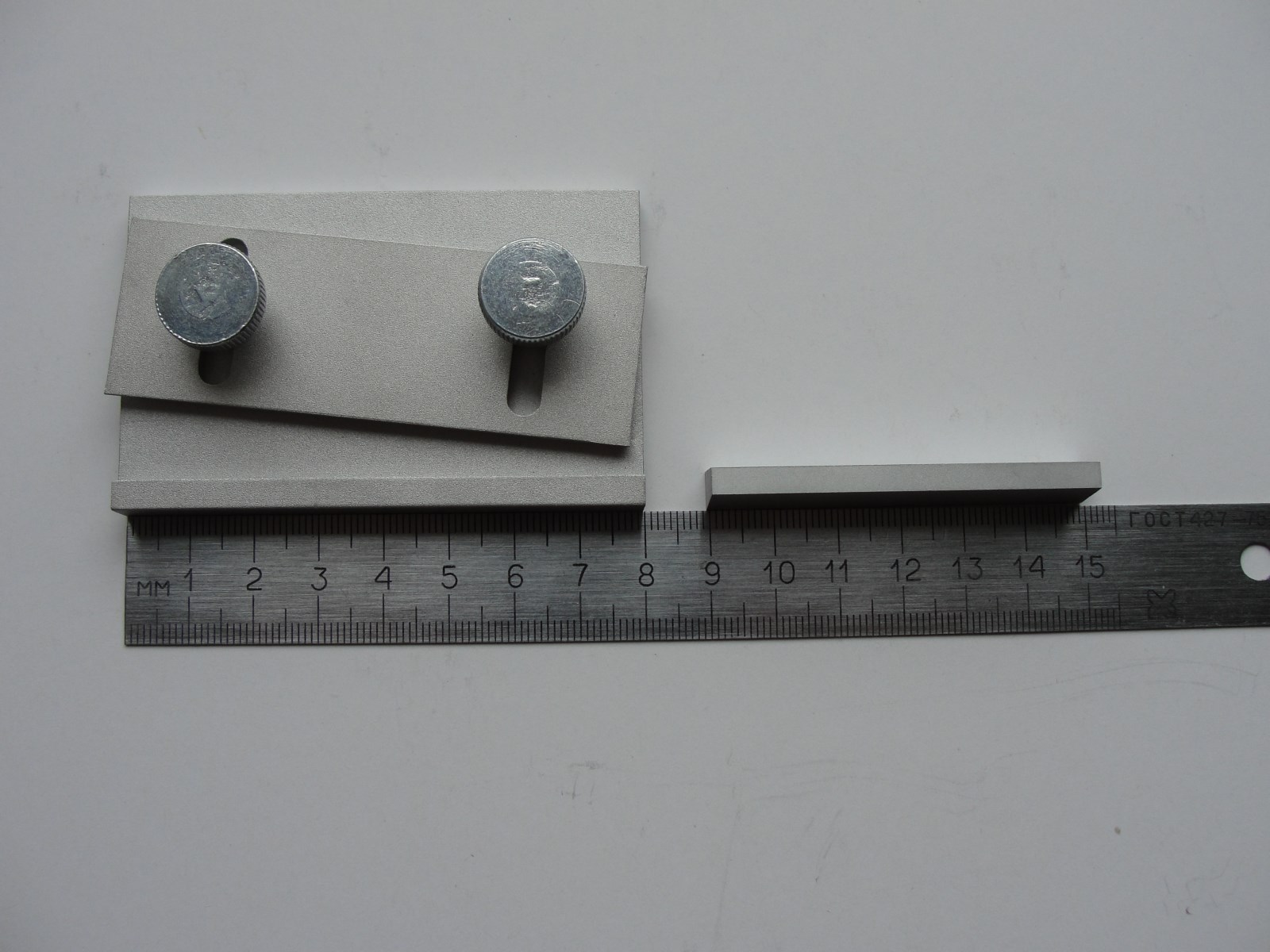 The tool parts - base, sliding side and holding stick - are made of aluminium, with steel wing head screws or thumb screws for easy manipulation.
