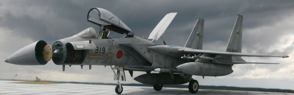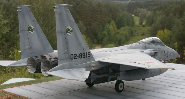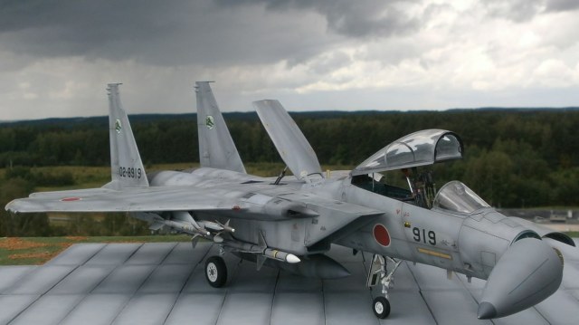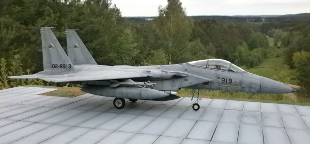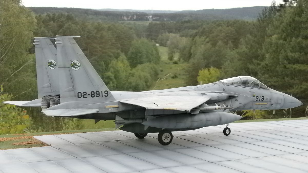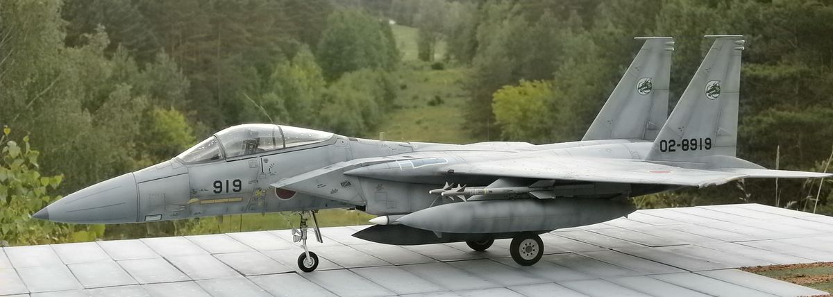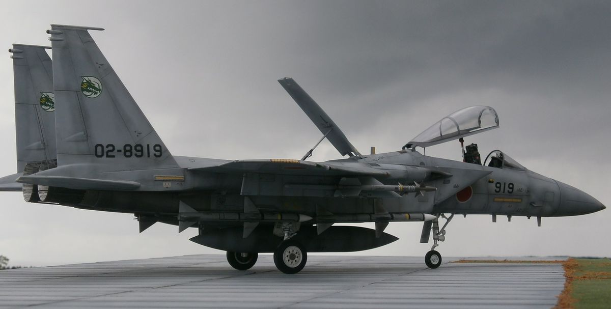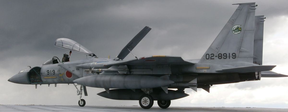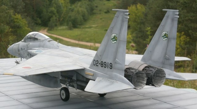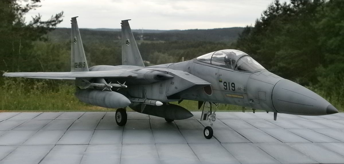 Коротко о самой машине.До того как Японская сторона опредилилась с F-15, в качестве альтернативы рассматривались такие типы ЛА как F-14 и F-16. Одноместный всепогодный вариант истребителя для ВВС Японии, выпускался с 1982 года компанией Mitsubishi по лицензии. Конструктивно аналогичен истребителю F-15C, но имел упрощённое оборудование РЭБ. Первый полёт в Японии F-15J совершил 1981-08-26 Всего изготовлено вместе с двухместной модификацией 223 самолёта(по другим данным 165 F-15J и 36 F-15DJ). Стоимость одного F-15J(по ценам на 1990г) составляла 55,2 миллиона USD.