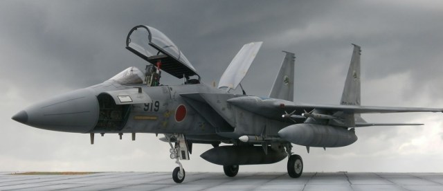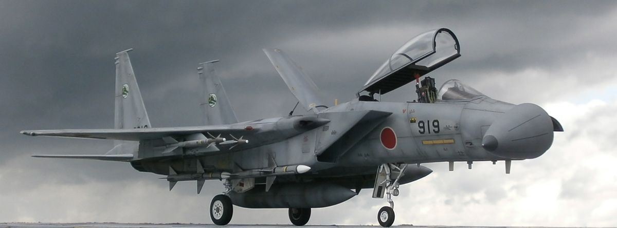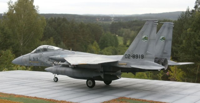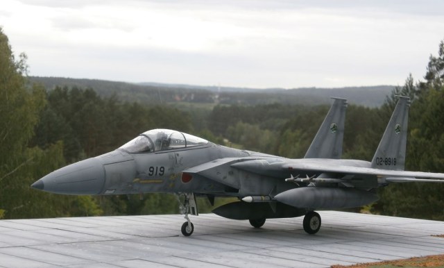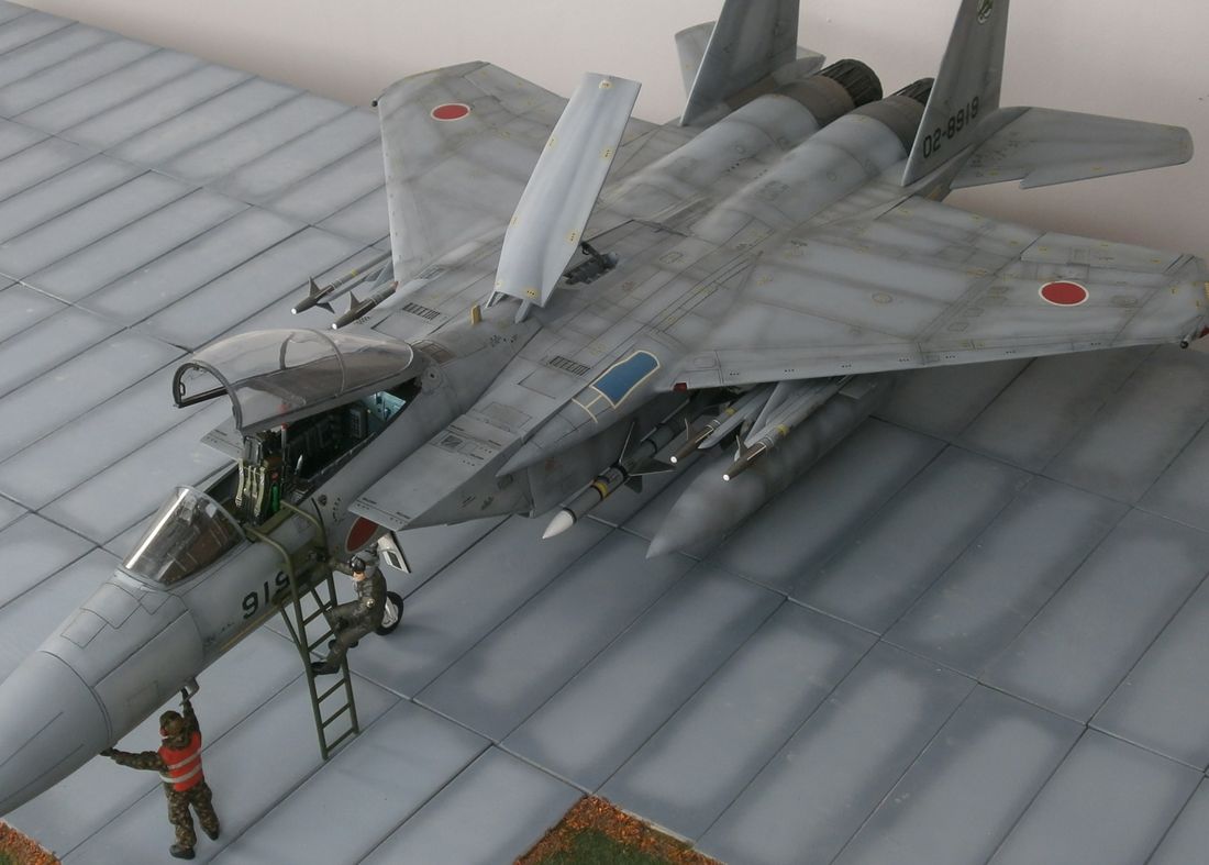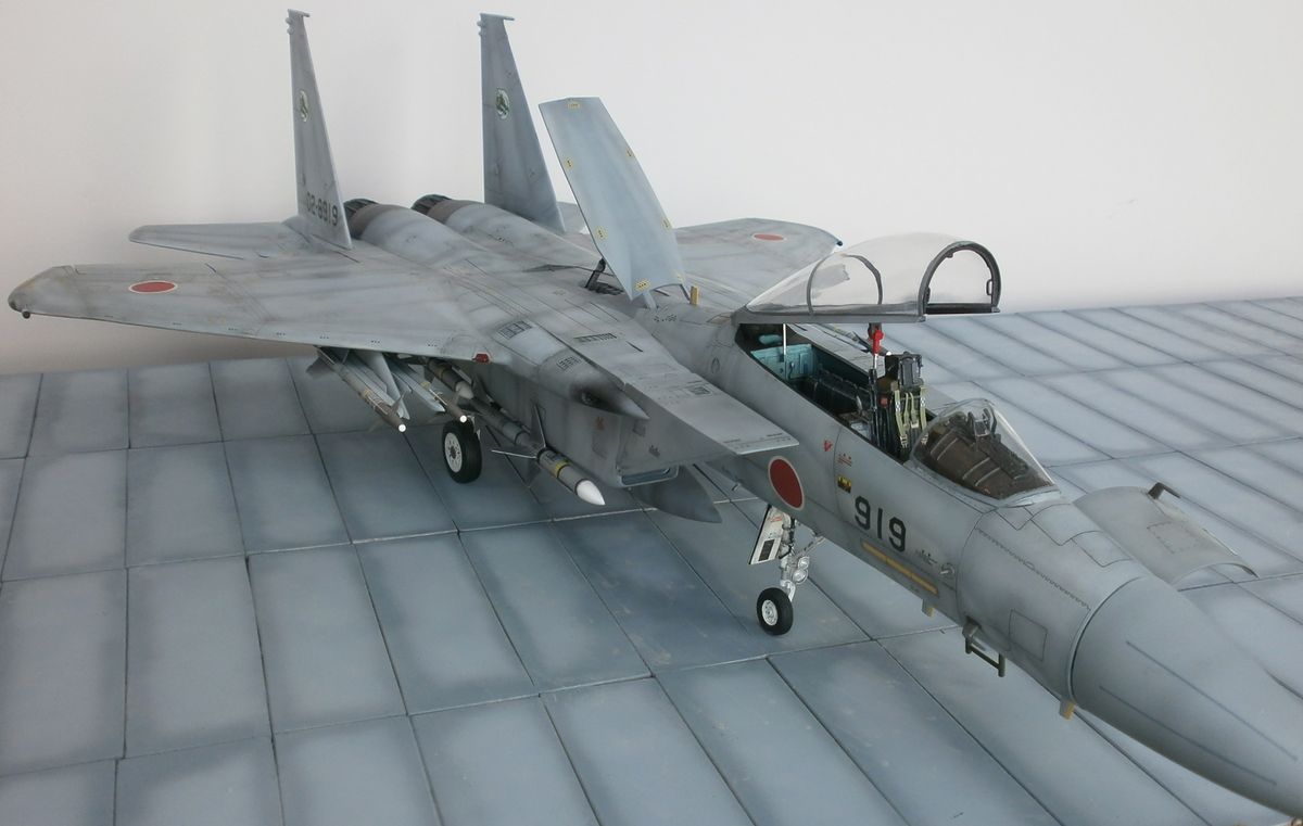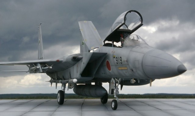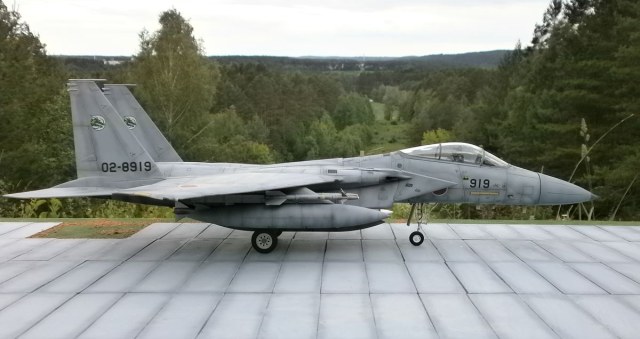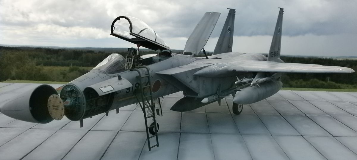 Коротко о самой машине.До того как Японская сторона опредилилась с F-15, в качестве альтернативы рассматривались такие типы ЛА как F-14 и F-16. Одноместный всепогодный вариант истребителя для ВВС Японии, выпускался с 1982 года компанией Mitsubishi по лицензии. Конструктивно аналогичен истребителю F-15C, но имел упрощённое оборудование РЭБ. Первый полёт в Японии F-15J совершил 1981-08-26 Всего изготовлено вместе с двухместной модификацией 223 самолёта(по другим данным 165 F-15J и 36 F-15DJ). Стоимость одного F-15J(по ценам на 1990г) составляла 55,2 миллиона USD.