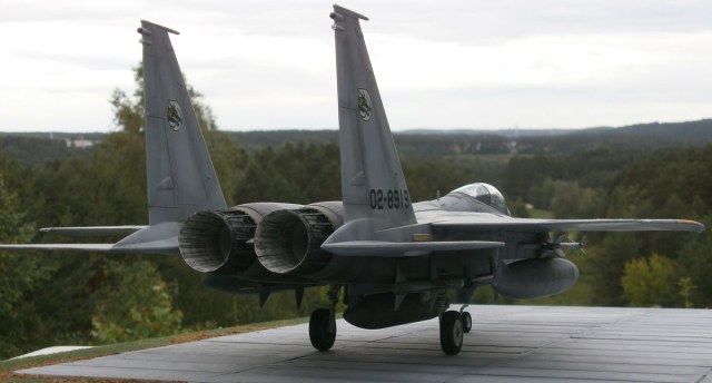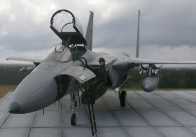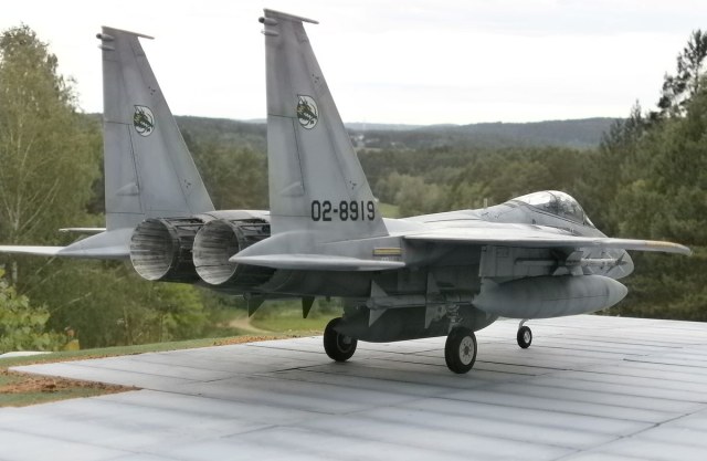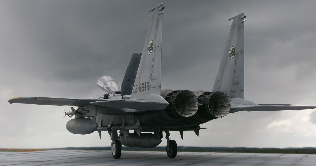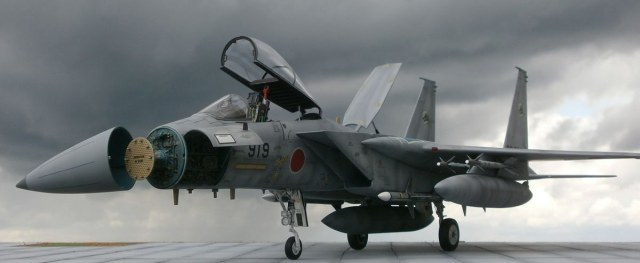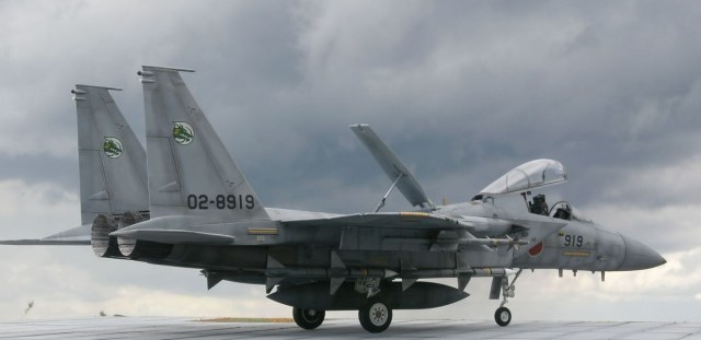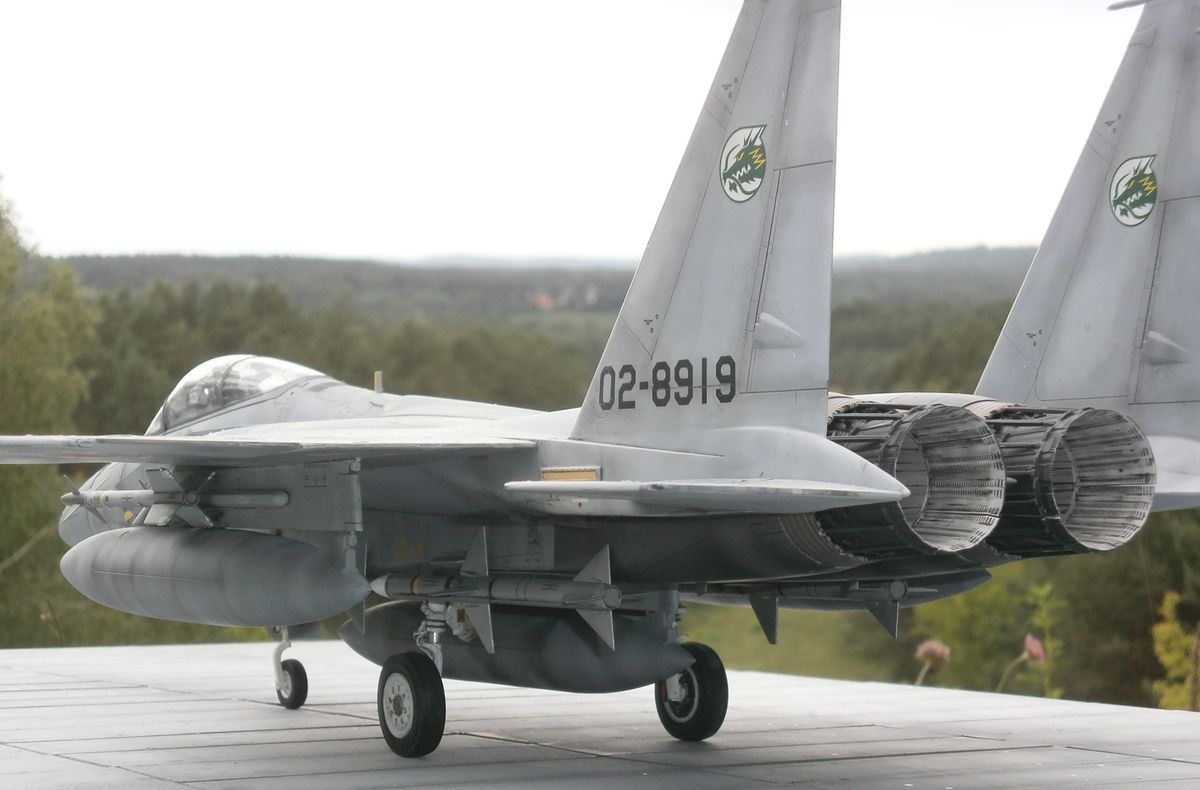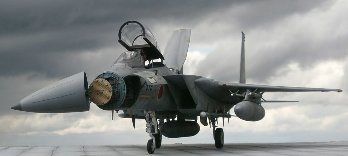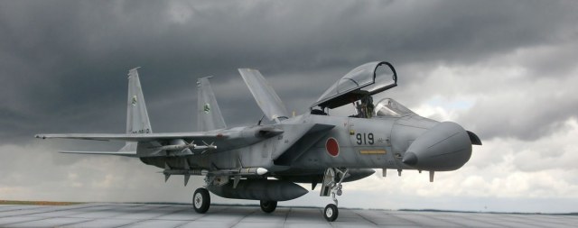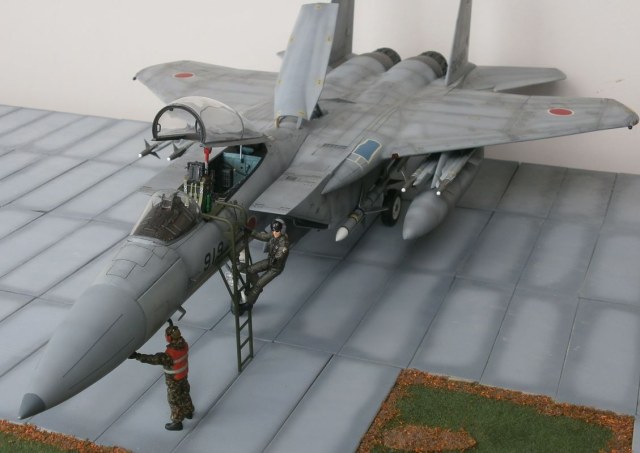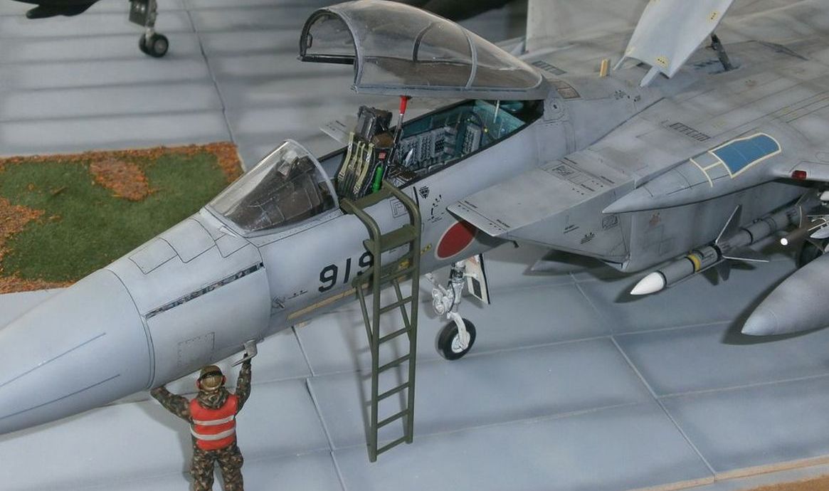 Коротко о самой машине.До того как Японская сторона опредилилась с F-15, в качестве альтернативы рассматривались такие типы ЛА как F-14 и F-16. Одноместный всепогодный вариант истребителя для ВВС Японии, выпускался с 1982 года компанией Mitsubishi по лицензии. Конструктивно аналогичен истребителю F-15C, но имел упрощённое оборудование РЭБ. Первый полёт в Японии F-15J совершил 1981-08-26 Всего изготовлено вместе с двухместной модификацией 223 самолёта(по другим данным 165 F-15J и 36 F-15DJ). Стоимость одного F-15J(по ценам на 1990г) составляла 55,2 миллиона USD.