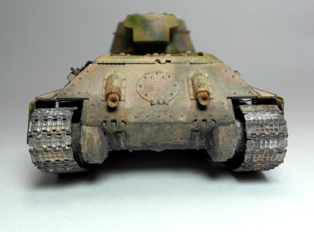 Мне понравилась работа.Траки получились, считаю и загажены красиво.Вот только, ржи внутри многовато.Дорожка стальная нужна.Экраны -очень хороши.Слева,так и просятся, пара царапин в середину.По краям,вон как много. Выхлоп, рассверлить надо.И черенок у лопаты, какой то- коричневый.