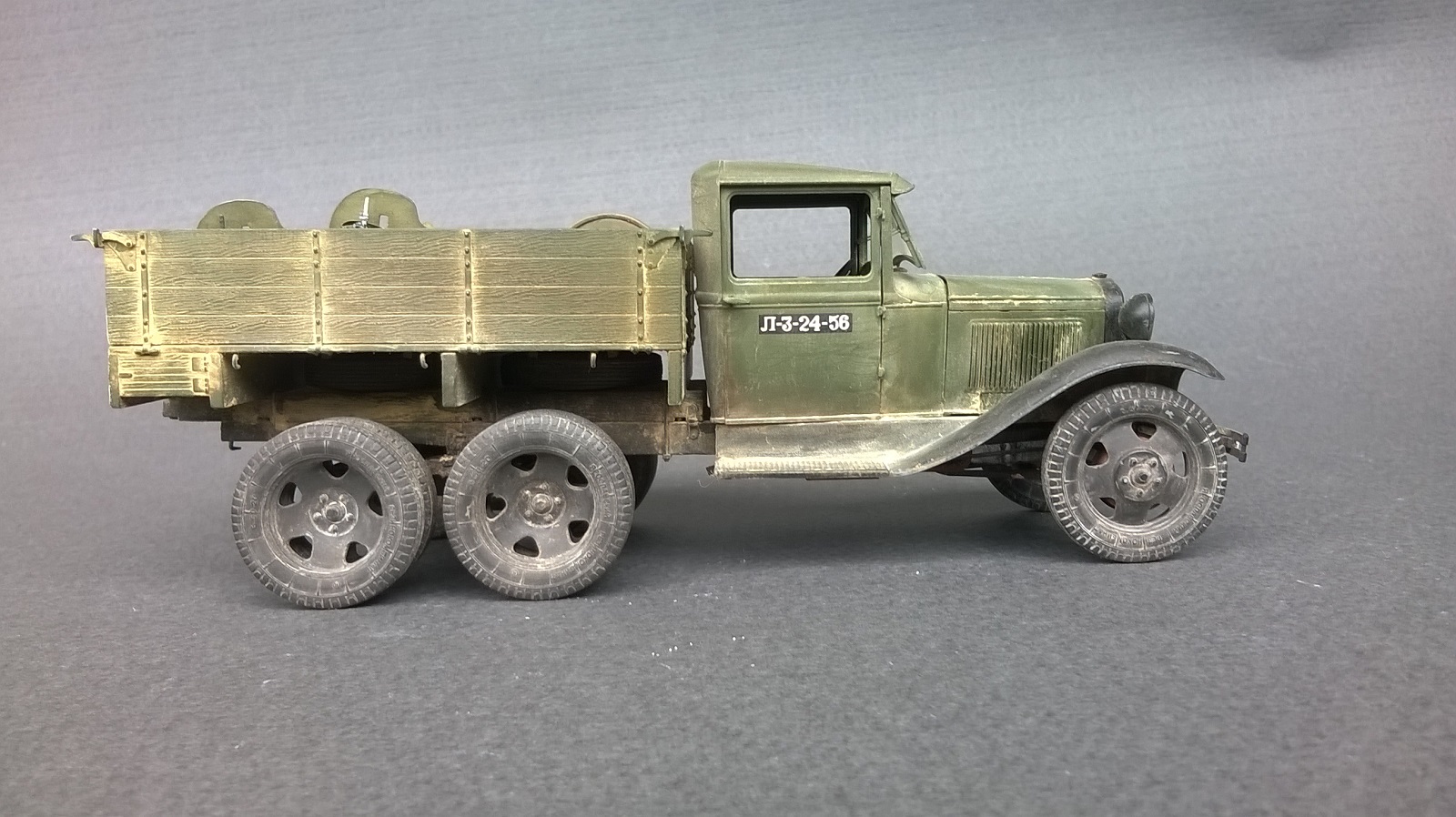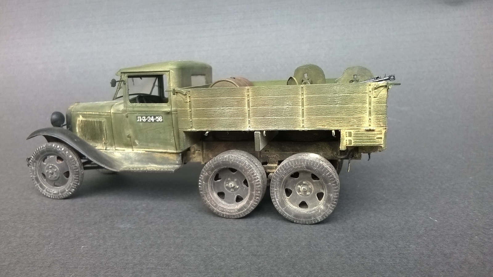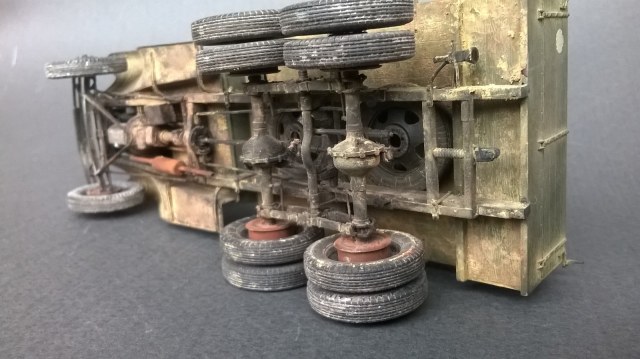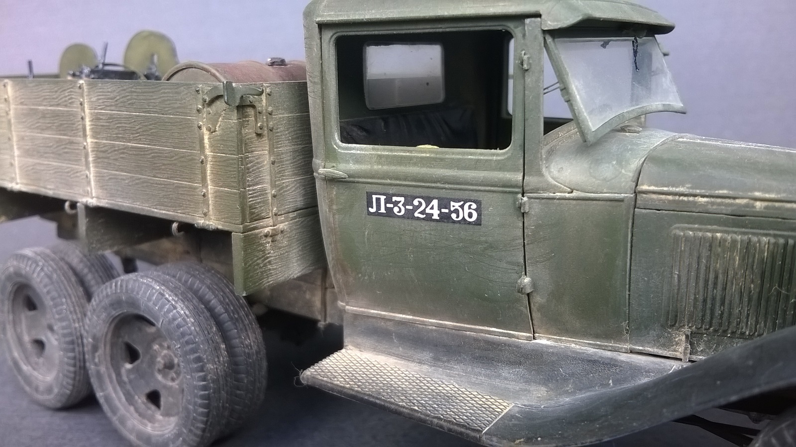 по исполнению конечно круто, всего навалом. А мне вот не нравится, неестественно все, слишком нарочито. И в кузове... ну не бывает так, чтоб наваливали в кузов бочек, стволы и прочее. Все же разобьется и поломается в дороге. По мне, если оживлять кузов, так натурально, ящики поставить под брезент, или бочками заставить...