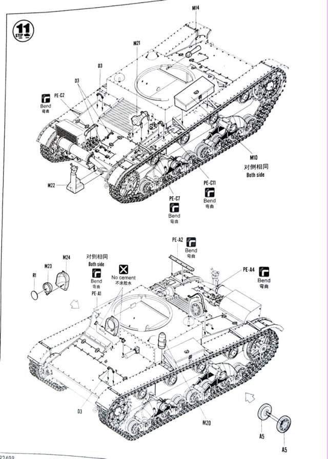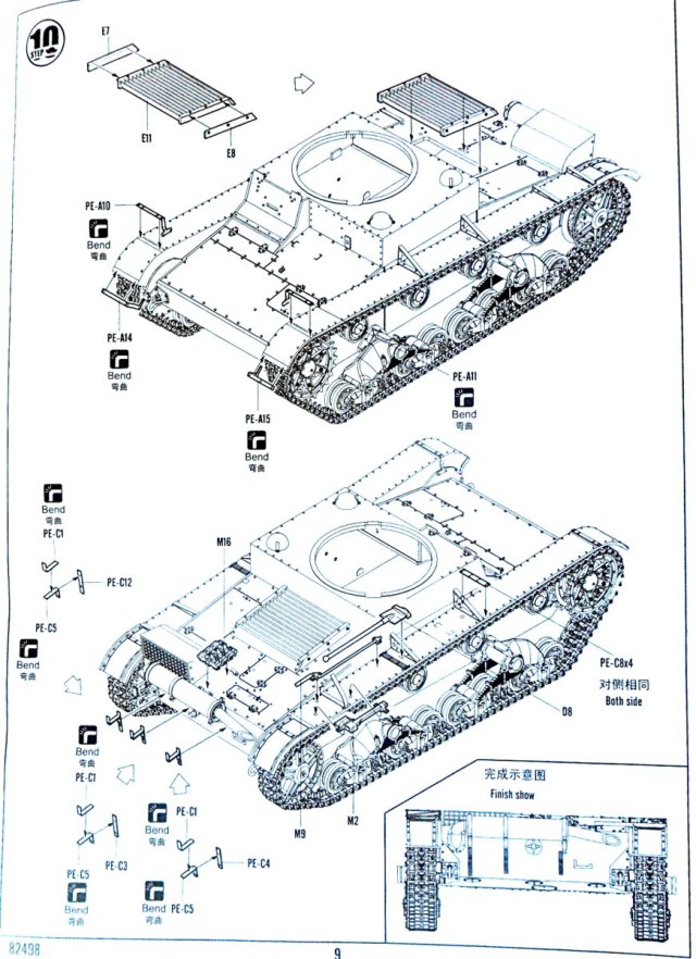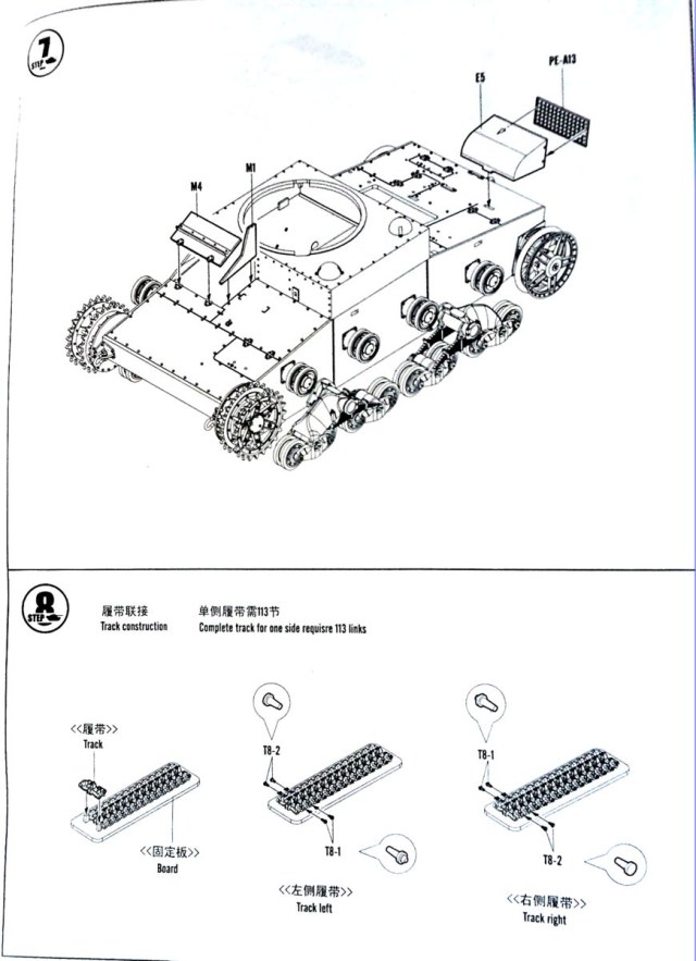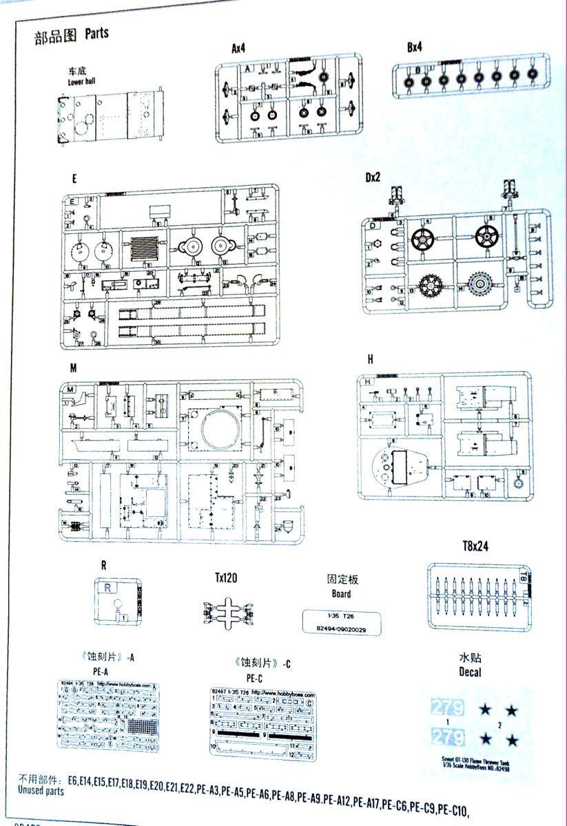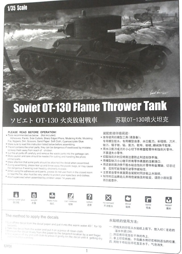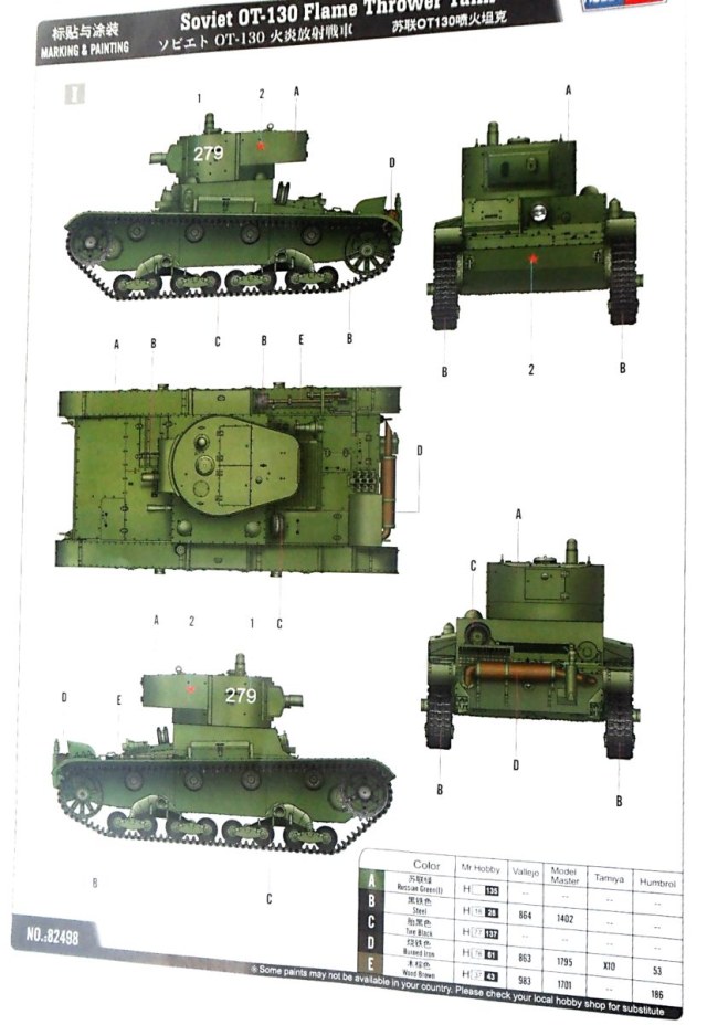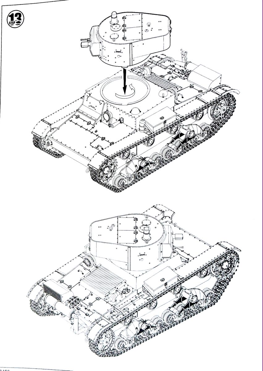 Инструкция стандартная, как и остальных Т-26-х. Дан цветной образец окраски и маркировки машины (2 варианта), однако декаль только на один вариант маркировки.