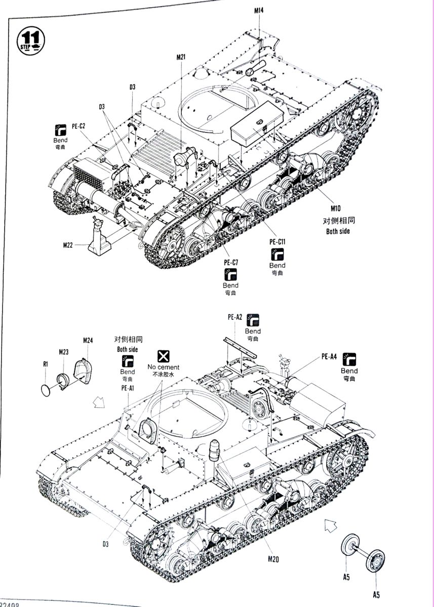 Все ранее указанные "косячки" остались, особенно по башне и поддерживающим каткам, но есть и положительные моменты: корпус и рубка даны сварными, т.е. без клепок, рубка мехвода выдвинута вперед (как и положено с таким корпусом), ленивец и ведущие даны поздние, катки также даны поздние, т.е. со съемным бандажом.