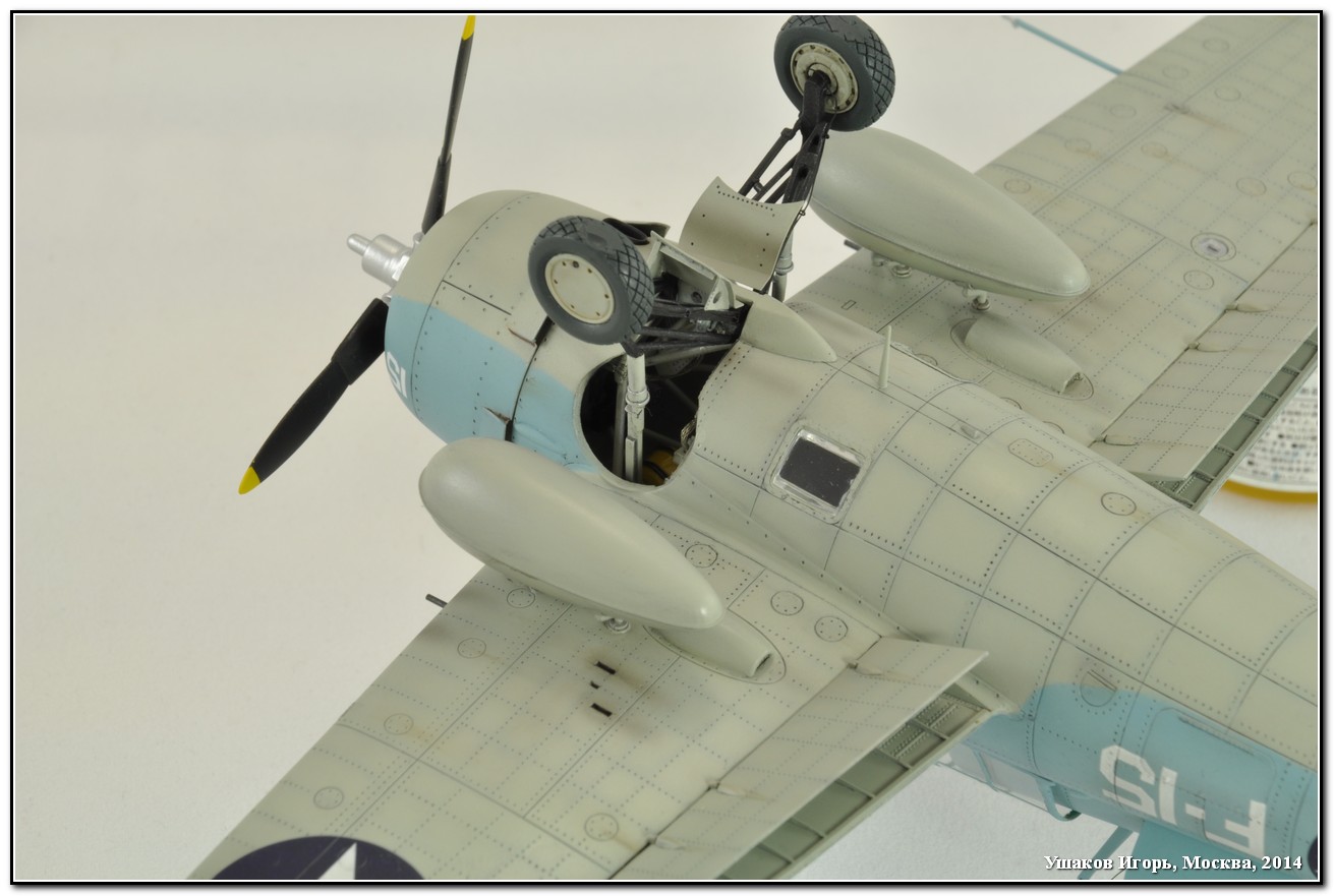 Парни спасибо за теплые слова. Ниша шасси цвета нижнего камо, т.е. Light Gull Grey, кажется так он называется. Кабинет цвета Bronze Green. На F4F-3 цвет кокпита не Интерриор грин. Вот здесь почитайте, более подробно все расписано по окраске интерьеров американских палубиков: