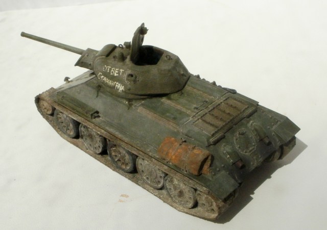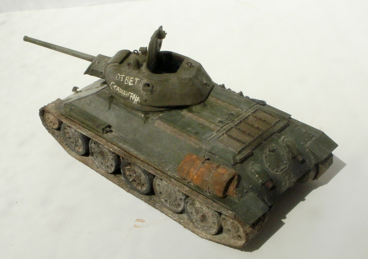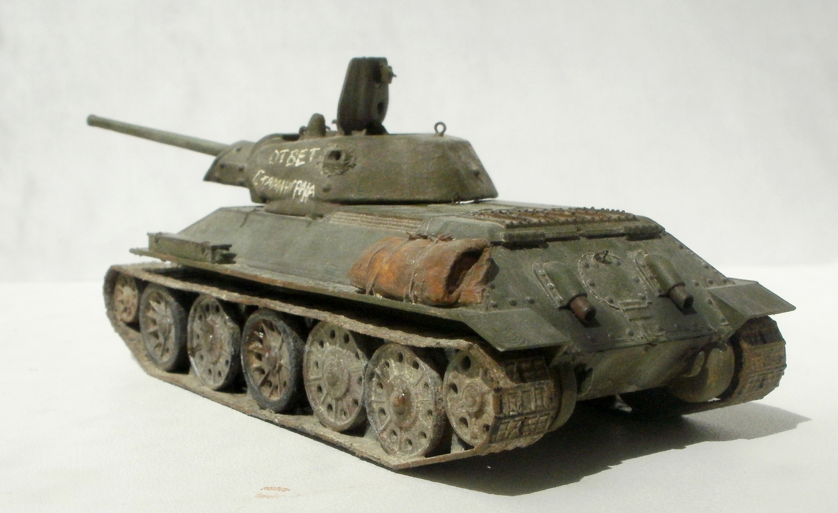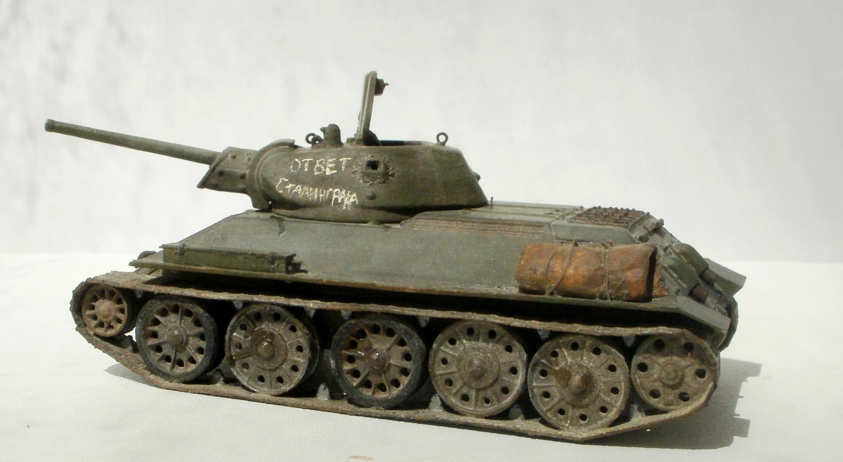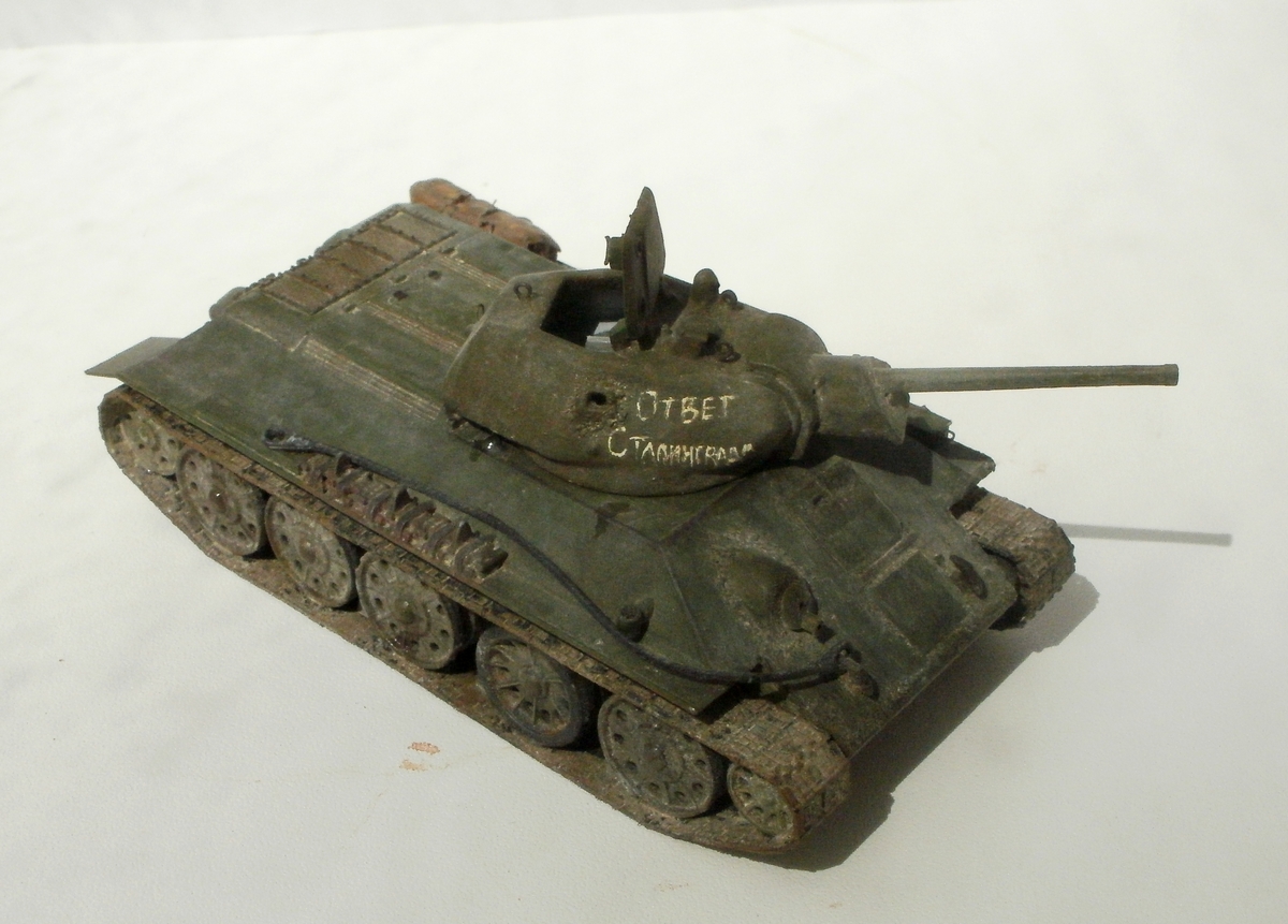 вашему вниманию представляется т-34, отремонтированный сталинградскими рабочими летом 1943 года, эшелон таких отремонтированных танков с надписью "ответ сталинграда" был отправлен на южный фронт.