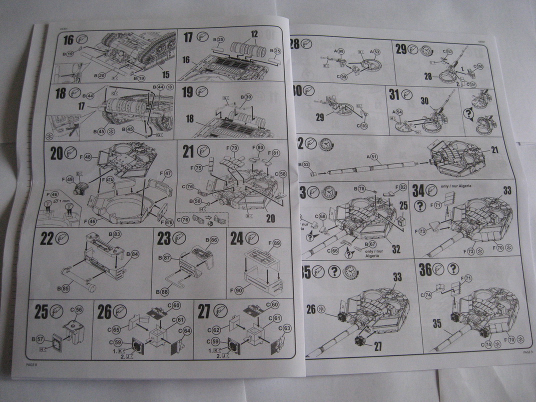 Перед нами классическая коробка от revell. Внутри инструкция по сборке и окраске , декаль, четыре литника из пластика светлого цвета. Набор почти полностью идентичен предыдущей модели Т-90 , за исключением башни. Отливки высокого качества , детализация и проработка для данного масштаба на высоком уровне. Косяки еще не искал.