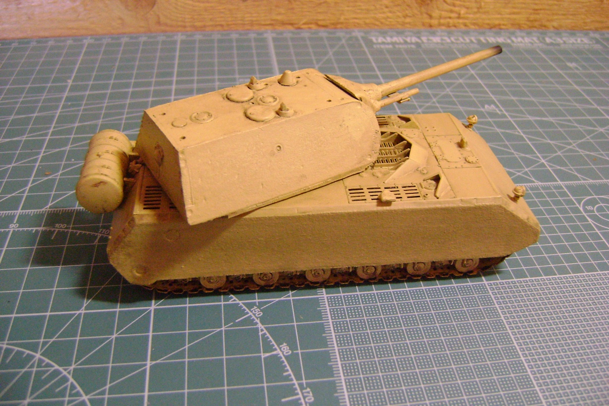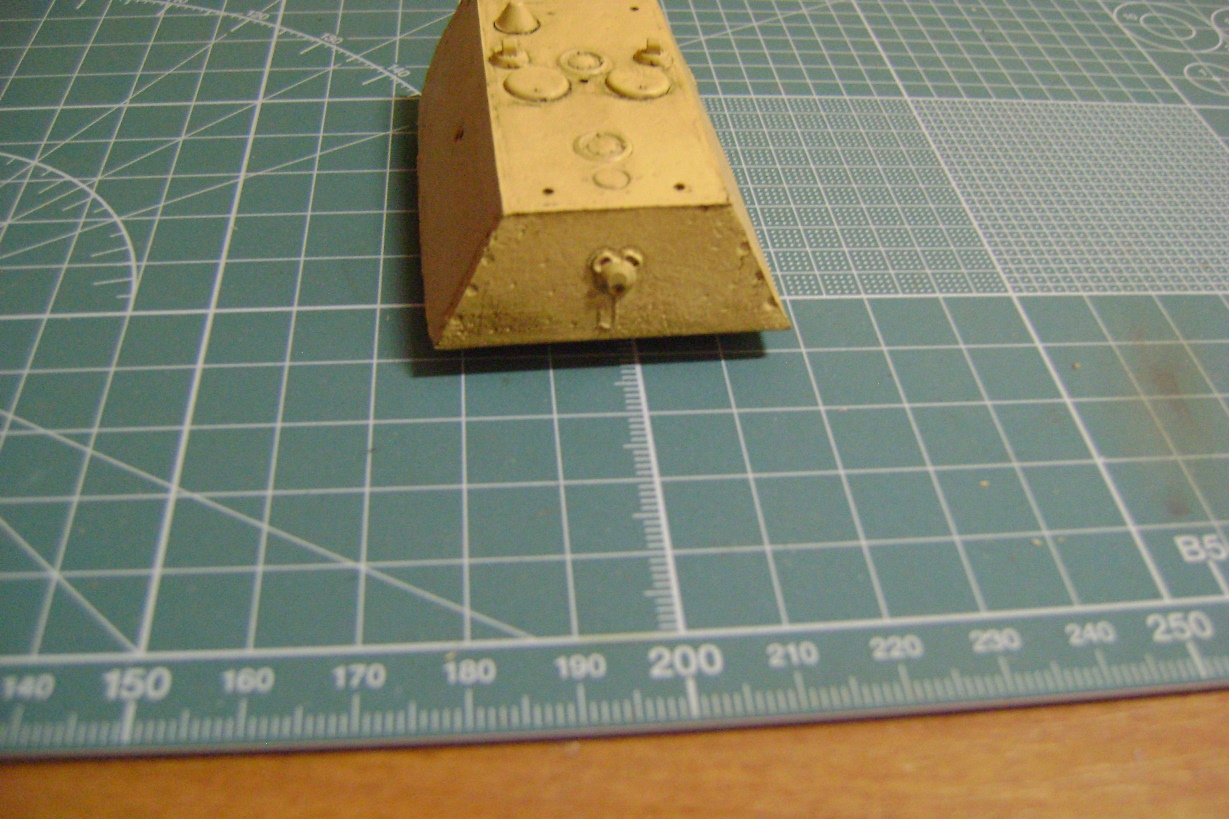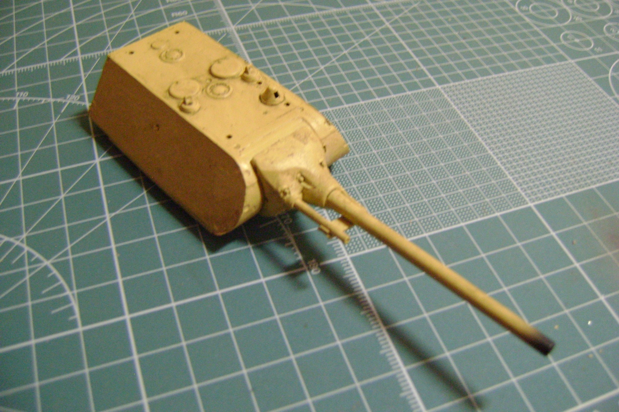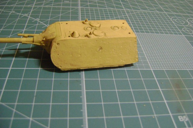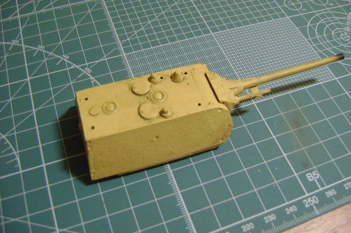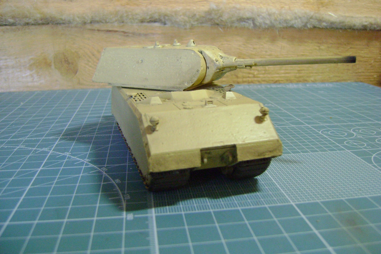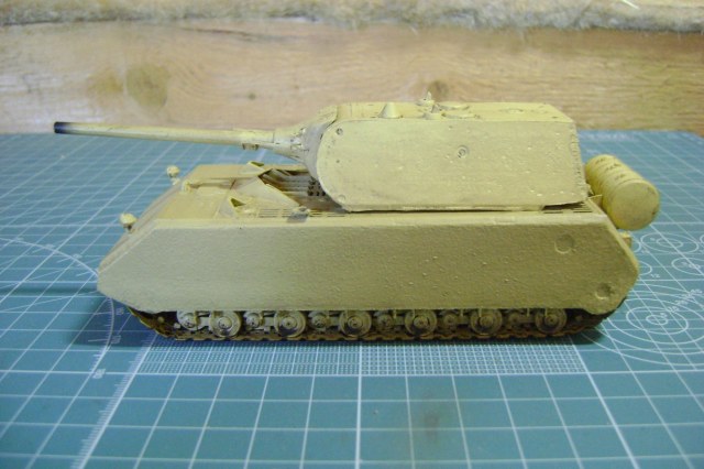 -Довольно неплохая проработка, а главное, наличие мелких деталей: проводка к фарам, ремни, удерживающие бензобак, выводы для антенн, цепочка на люке для снарядов. Также порадовала форма маски (как у Мауса в Кубинке, рубленая, а не гладкая, какую дает Дрэгон в 35-м.