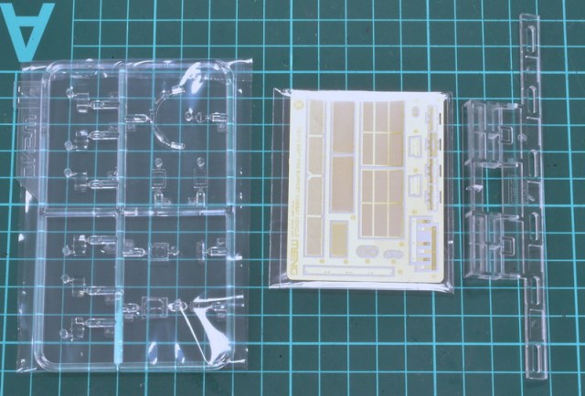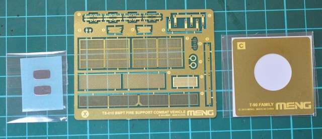 Коробка на вид оказалась довольно внушительная, но и внутри оказалось внушительное количество литников, всяких дополнений из резиноподобных деталей, а также плата травления и пара прозрачных литников с имитацией триплексов. Траки, как и на Т-90 наборные со станочком.