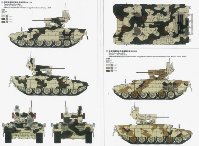 Последние несколько страниц в инструкции даны камуфляжи с трёх по годам 2009, 2011, 2013 выставок вооружений проводившихся в Нижнем Тагиле.