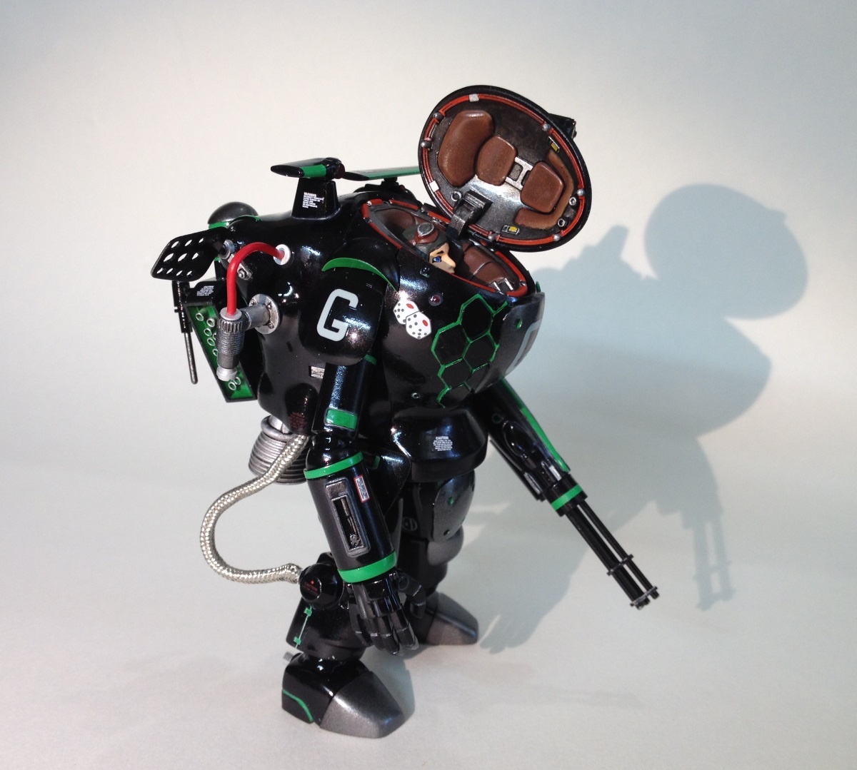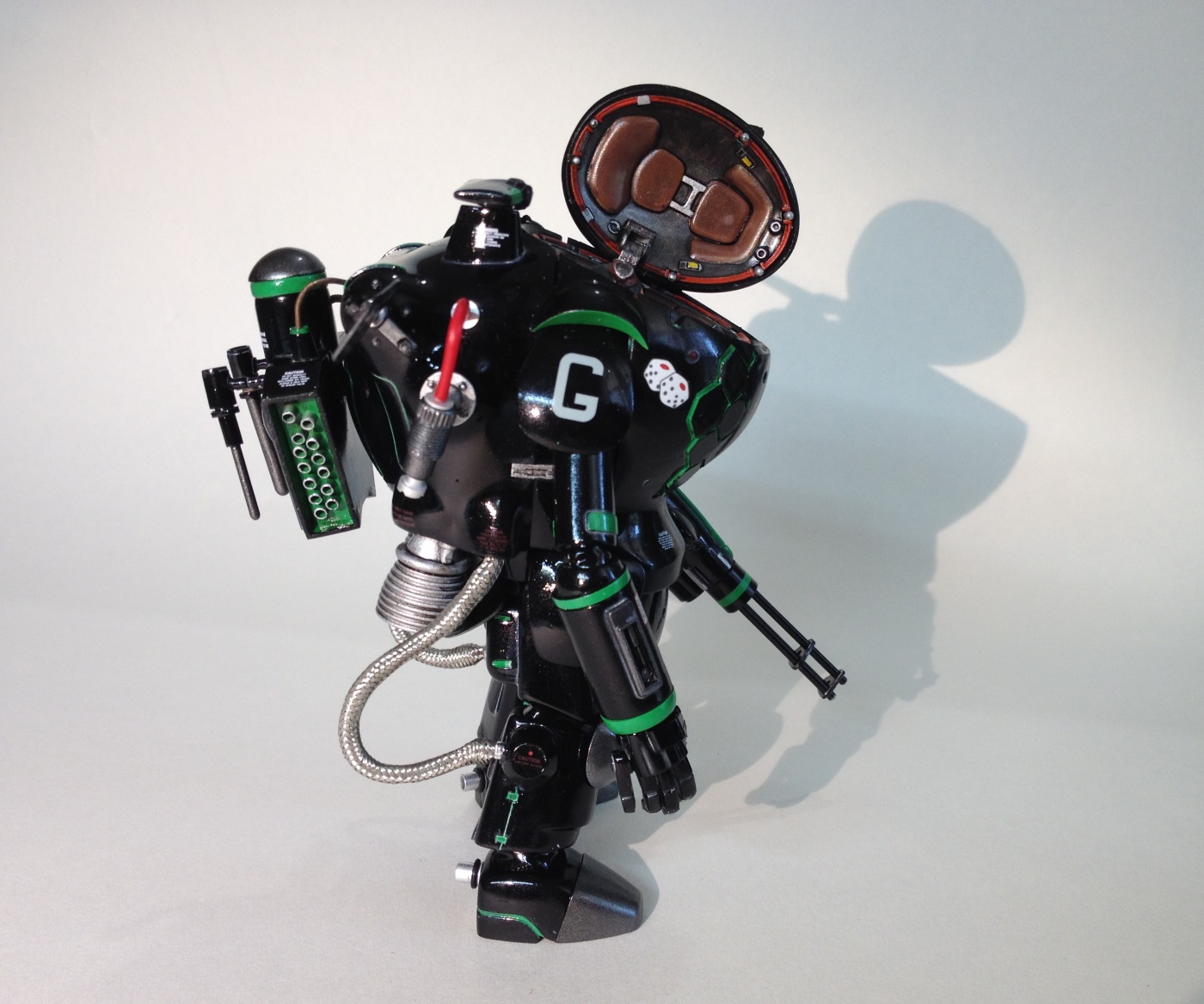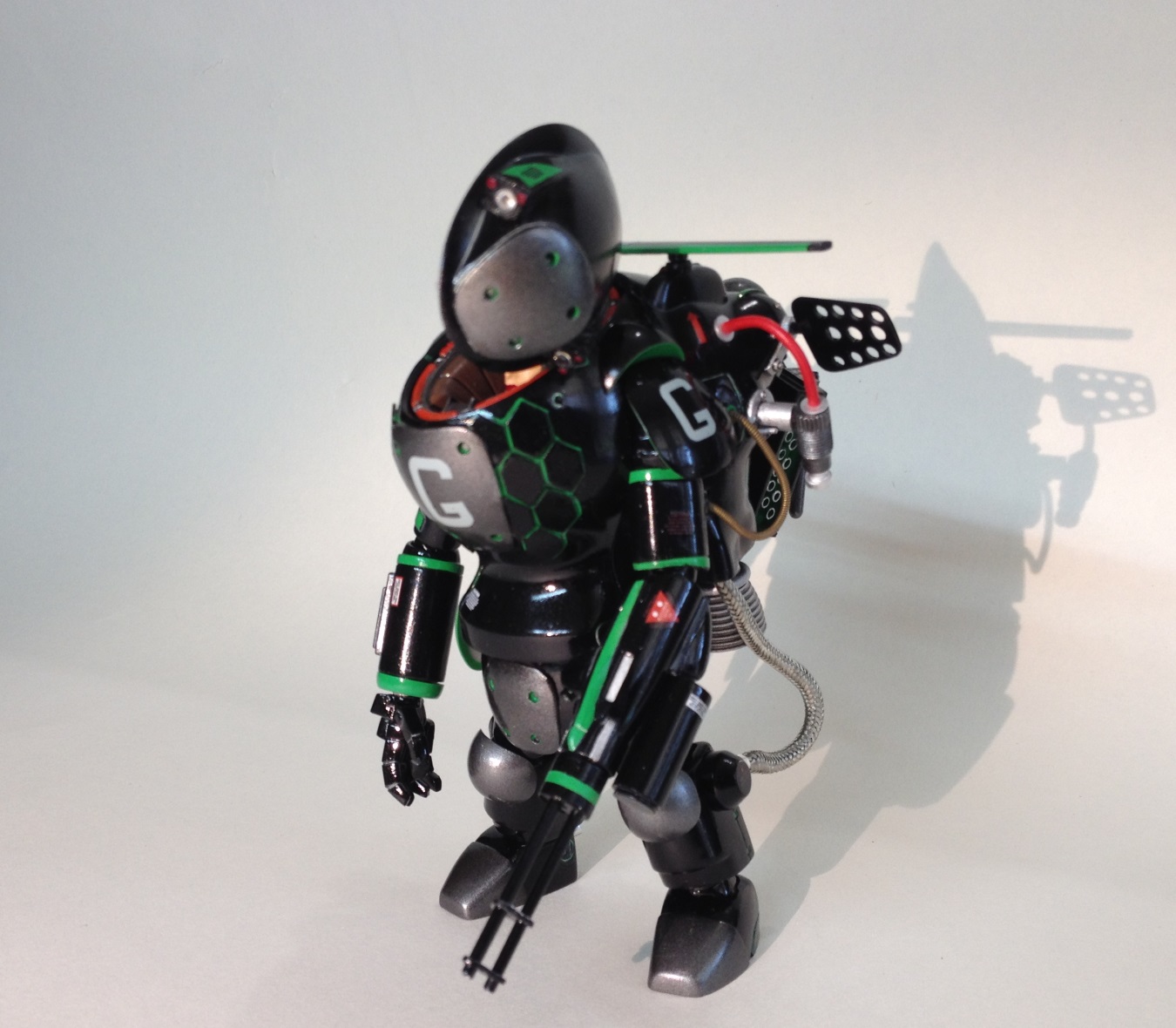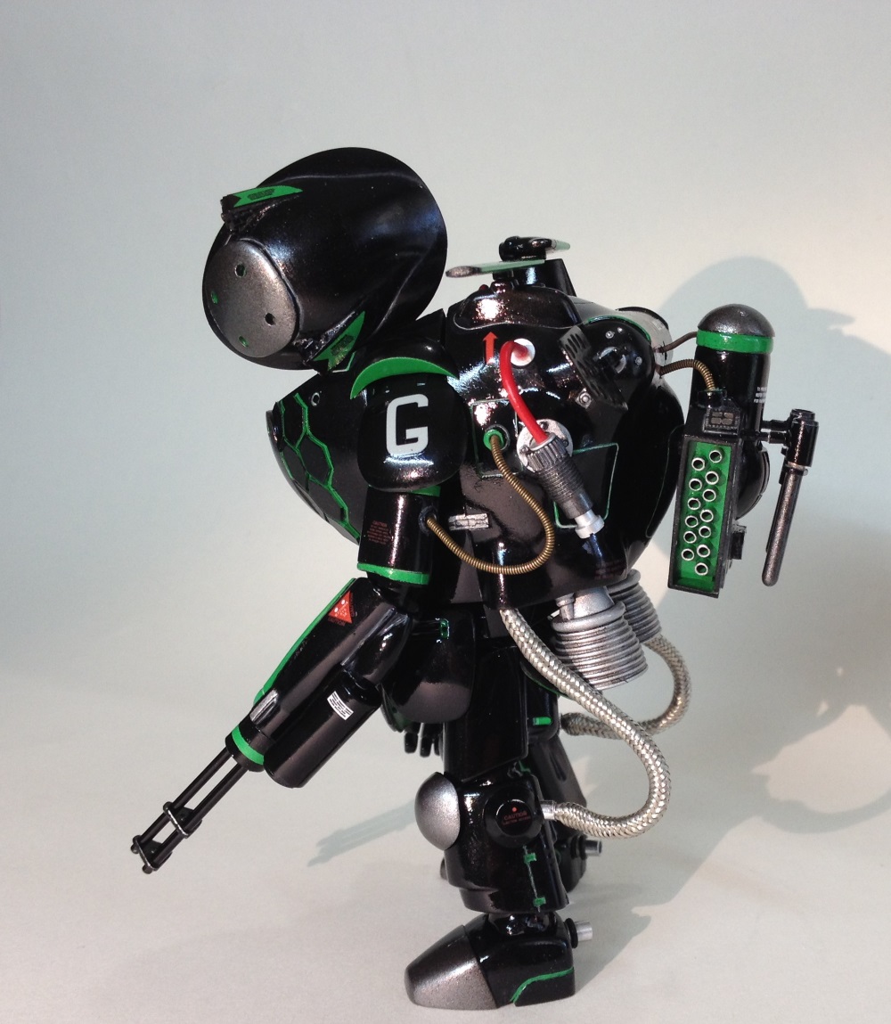 Небольшой перепил кита SNAKE-EYE. Сьют доработан в сторону увеличения маневренности в вакууме для абордажа кораблей и станций, а также выполнения безпарашютного маловысотного десантирования в атмосфере, перевооружен крупнокалиберным пулеметом с вращающимся блоком стволов и снабжен подвесным контейнером с элементами РЭБ и станцией отстрела тепловых ловушек и дипольных отражателей.