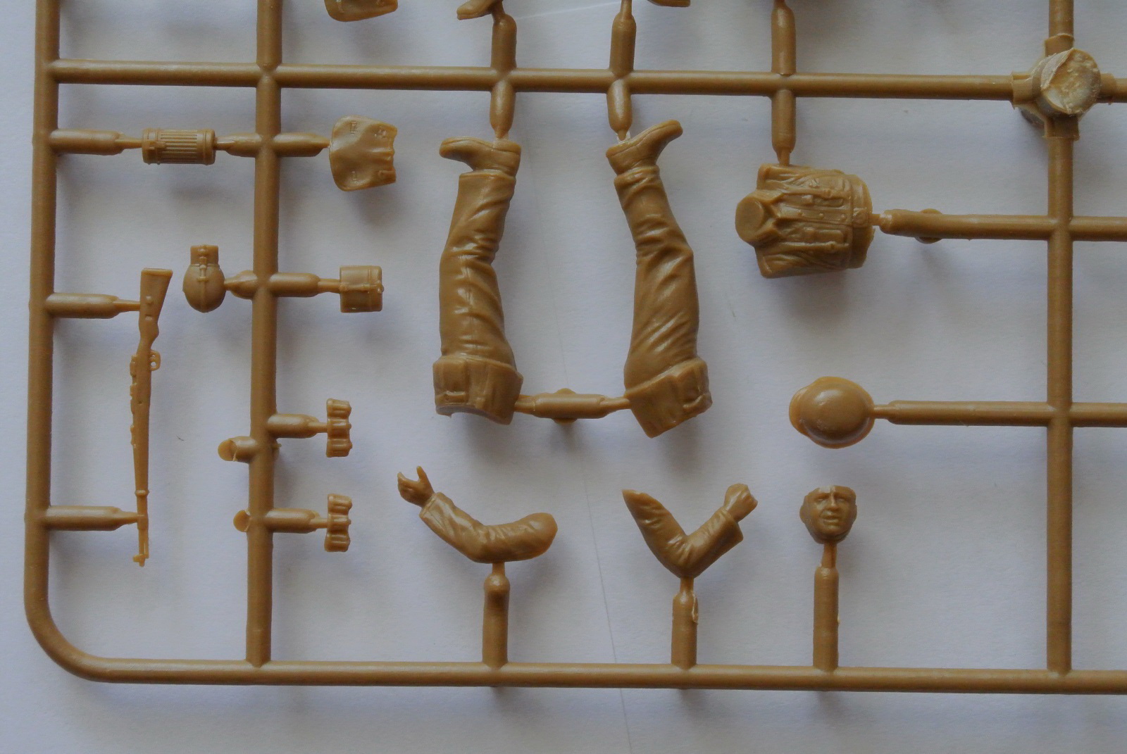 Набор состоит из одного литника бежевого цвета. Нам дается возможность собрать четырех бойцов Третьего рейха в бою, 1941-1942 года. Бокс-арт от А. Каращука достойный. Скульптор А. Гагарин.