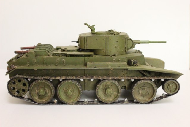 Здравствуйте ув. моделисты! Выставляю на Ваш суд вторую свою модель. Это БТ-7 от "Восточного экспресса" Никаких дополнительных наборов не использовал. Всё:ствол,решётка МТО,домкраты,лопаты и кое-какие мелочи самодел.Никакой конкретной привязки модель не имеет. Жду Вашей критики.