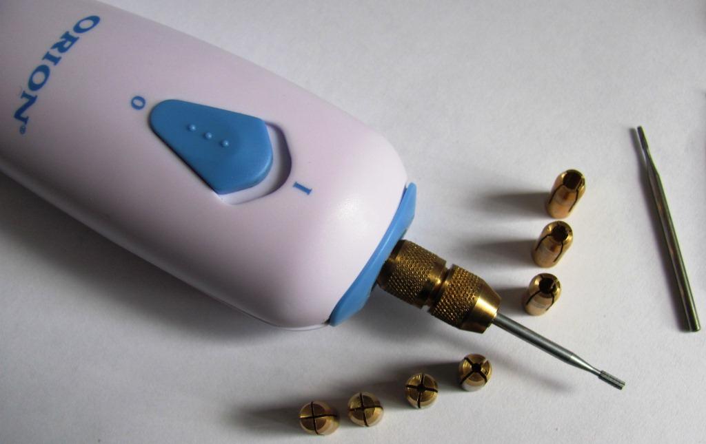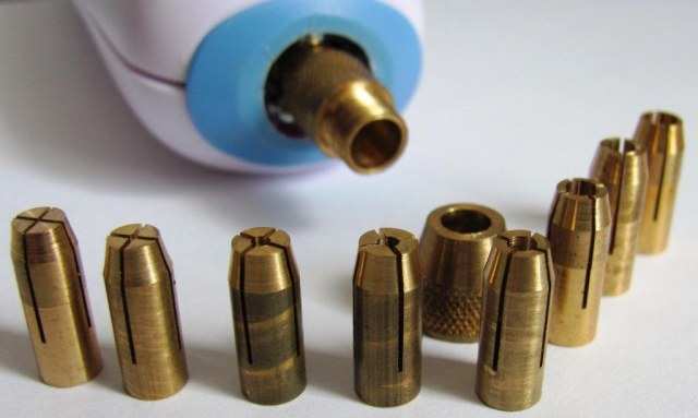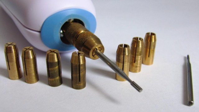 Использование насадок из набора также возможно: насадка крепится на стержень 2 мм и зажимается в цанге.