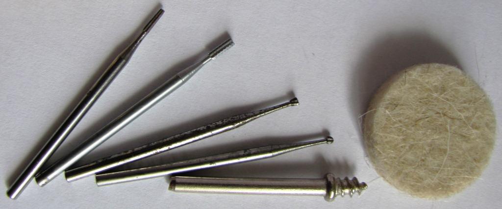 Давно мечтал решить вопрос с бормашиной, но как только она появилась, встал вопрос о методике ее применения:) Пока использую для снятия больших объемов пластика, фактически, для фрезеровки. На этой операции экономится огромное количество времени! Использую как стандартные насадки из комплекта, так и отдельные буры. Постепенно тренируюсь, была мысль сделать провисы полотна шарообразным буром, но пока хвастаться нечем: не получилось. Сверлить диаметр менее 1 мм тоже пока не решаюсь: ручной цангой как-то надежнее:)